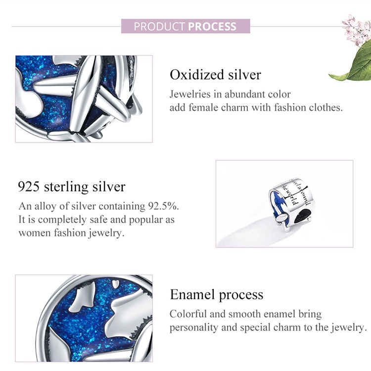 Bamoer 925 Silver Travel the World Series Beads Fit Para A Fabricação De Pulseiras Originais DIY Bangle