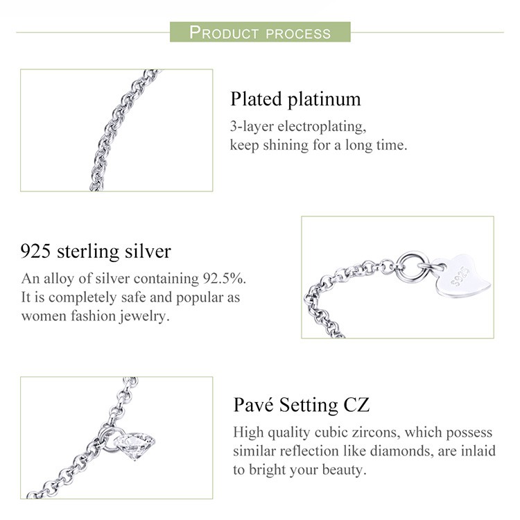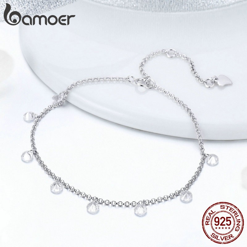 Bamoer 925 Silver White Gold Plated Zircon Charme Bracelete Correntes De Encanto Mão SCB103