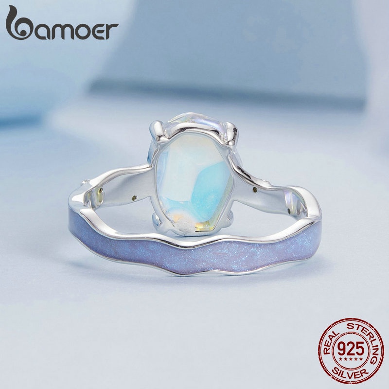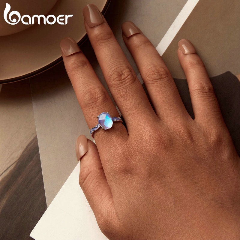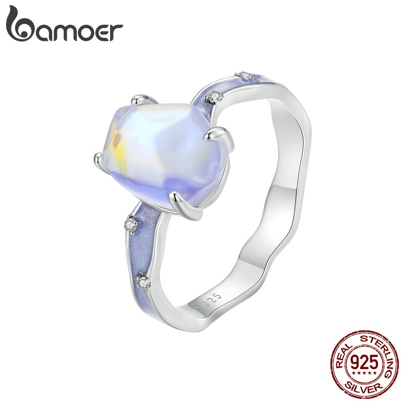 Bamoer 925 Sliver Ring Aurora Pedra Em Forma De Púrpura Zircônia Jewelry Presentes Para Mulheres