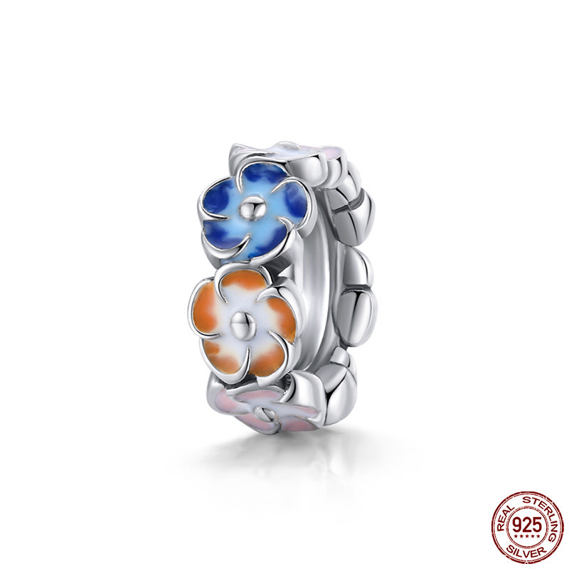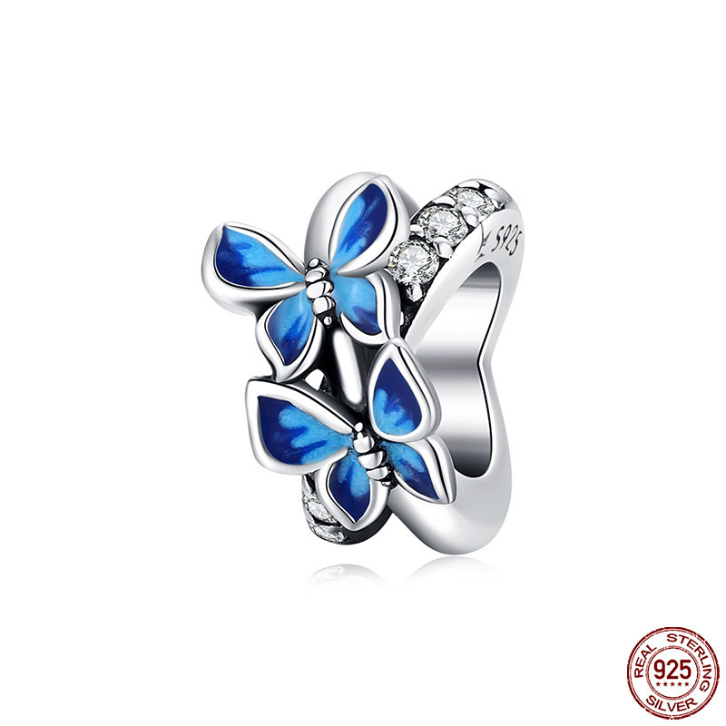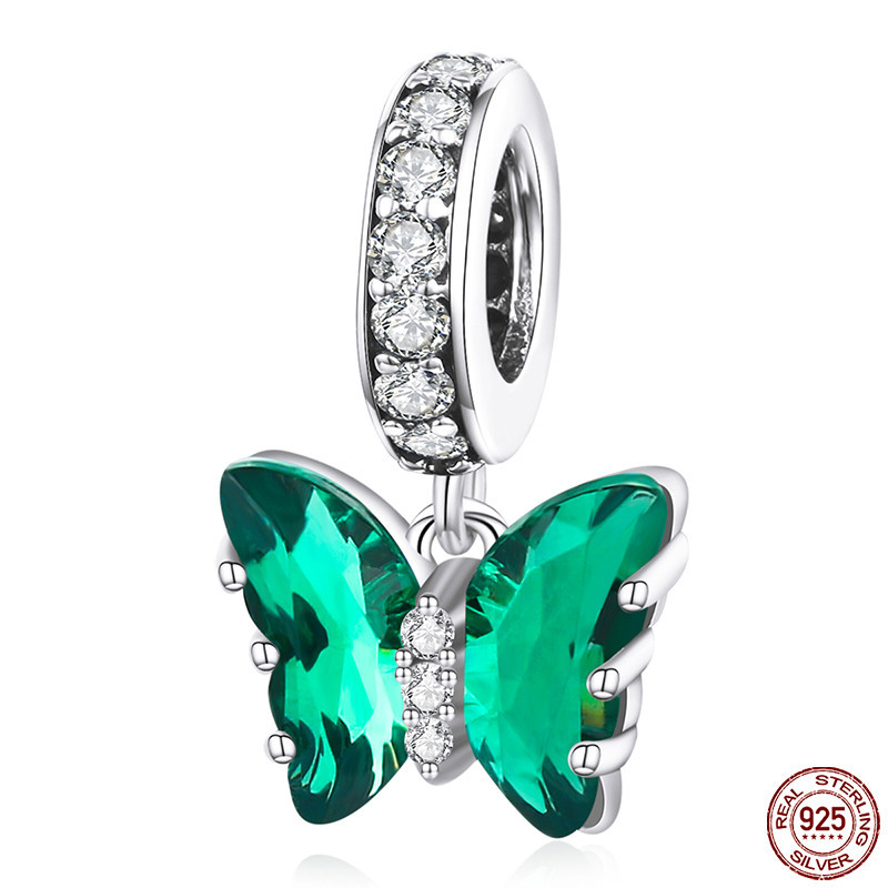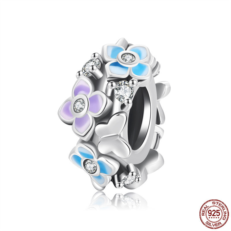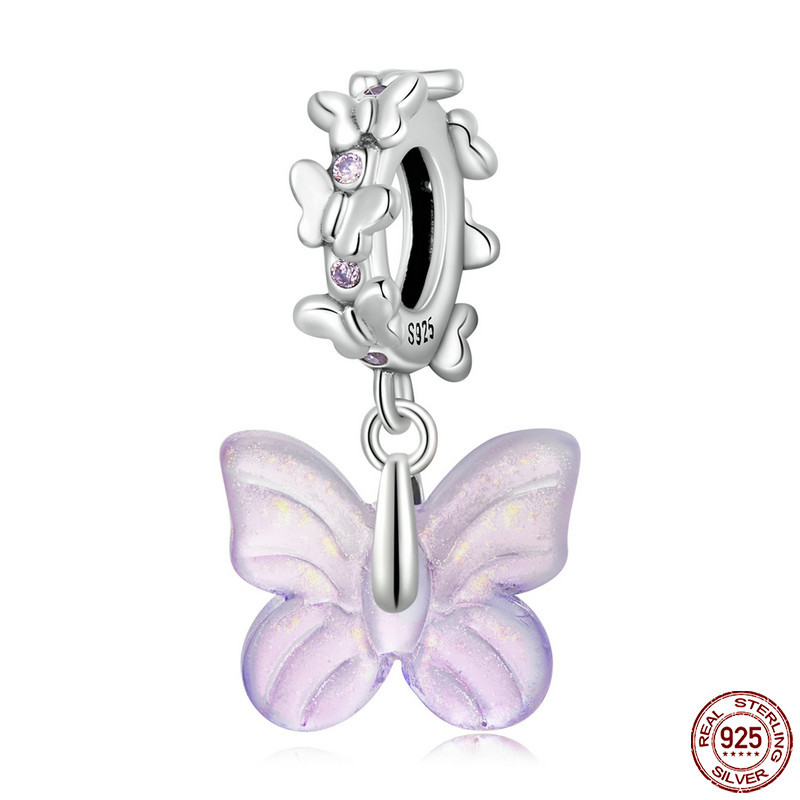 Bamoer 925 Sterling Silver Butterfly Charms Beads Purple Flower Pingente Arco-Íris Pulseiras Originais De Bricolage Bangle Jewelry Gifts