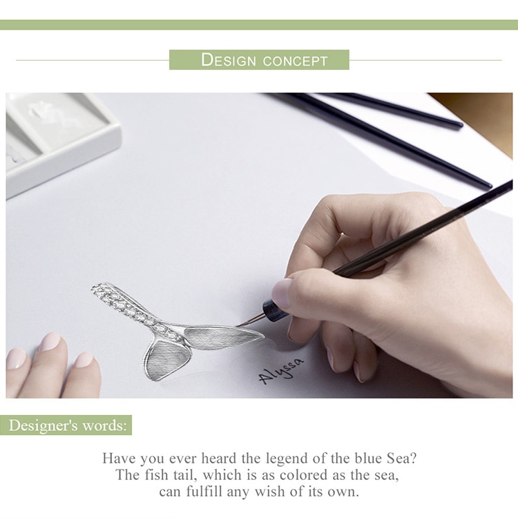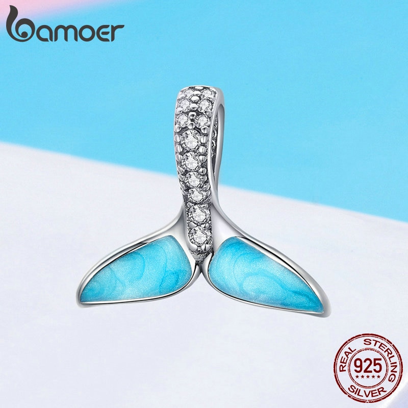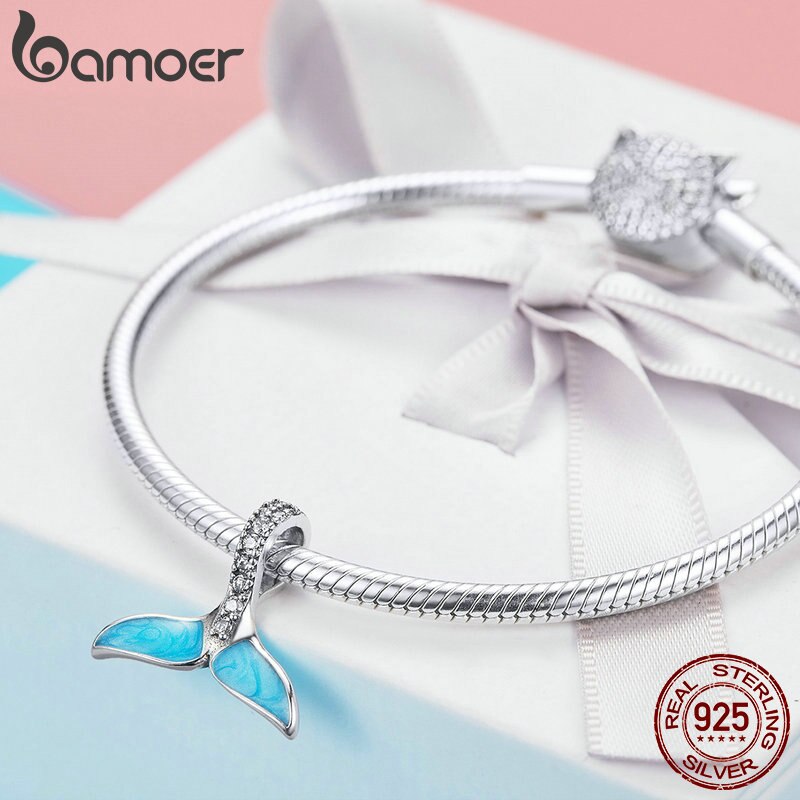 Bamoer 925 Sterling Silver Cauda Sereia Azul Esmalte Encantos Beads Fit Mulheres Colares Pulseiras De Prata Jóias Scc1067