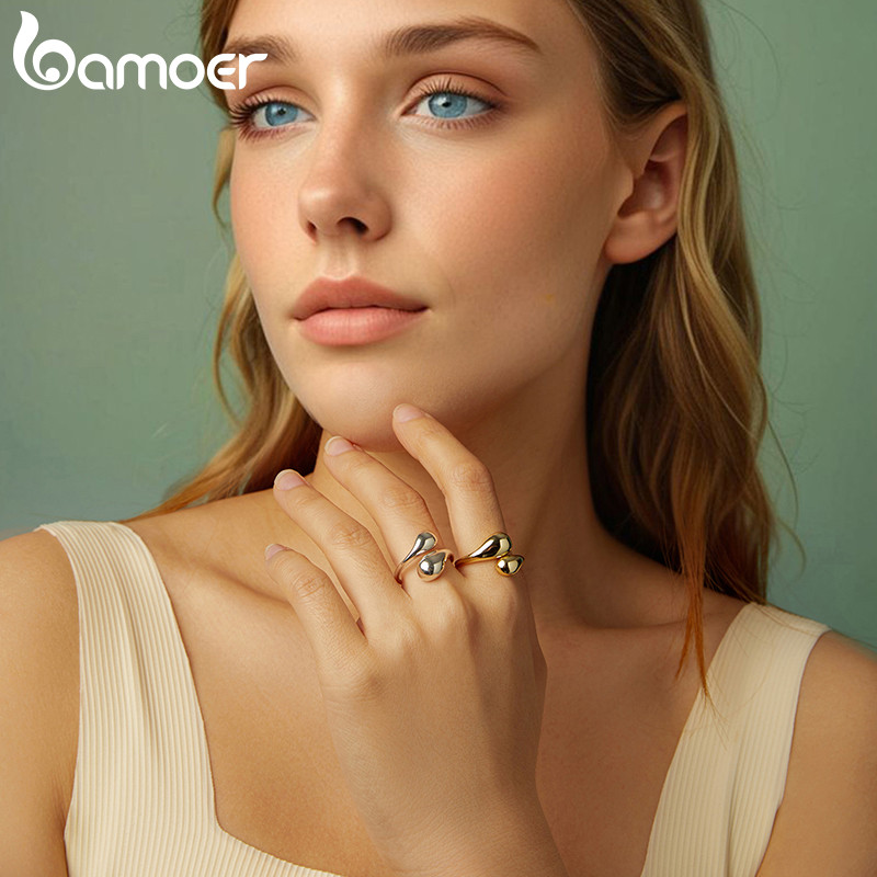 Bamoer 925 Sterling Sliver Anel Aberto Gota De Água Moda Joias Presentes Para Mulheres