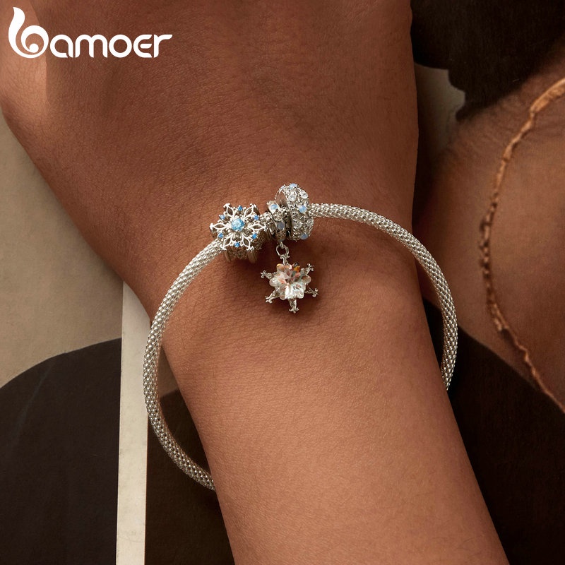 Bamoer 925 Sterling Sliver Charms Pendants Snowflake Collection Acessórios Para Pulseiras De Bricolagem