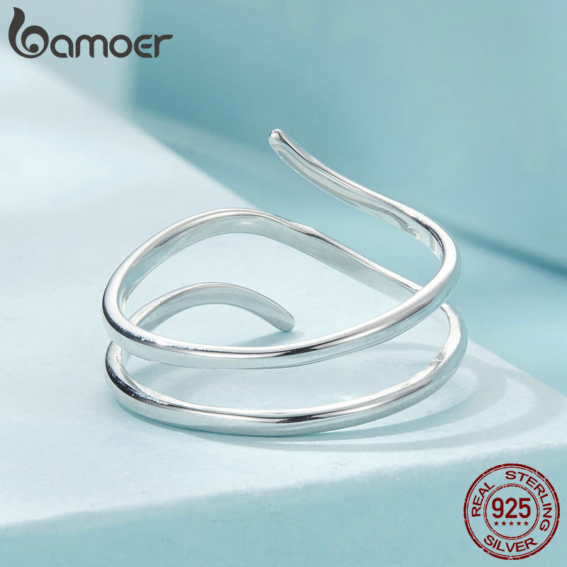 Bamoer 925 Sterling Sliver Fita Aberta Anel Multi-Camadas Jóias De Moda Simples Presentes Para Mulheres