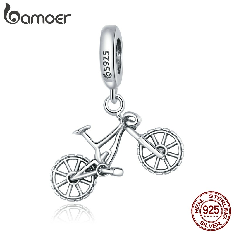 Bamoer 925 Sterling Sliver Mountain Bike Encantos Pingente Para Mulheres Da Moda Pulseira Diy Acessórios Bsc384