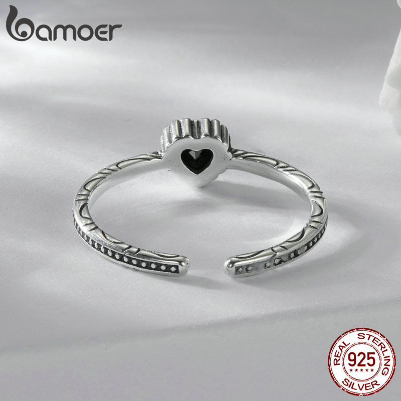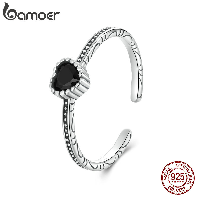 Bamoer 925 Sterling Sliver Ring Anel De Fita Coração Ajustável Jóias De Moda Preto Para Mulheres