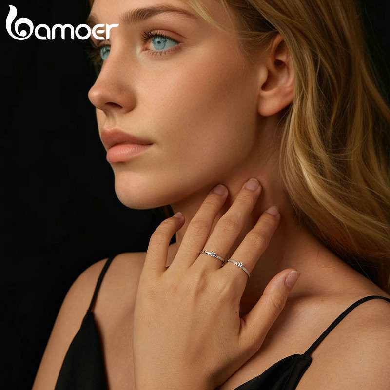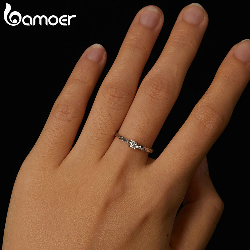 Bamoer 925 Sterling Sliver Ring Moissanita Espumante 0.1CT Jóias Presentes Para Mulheres
