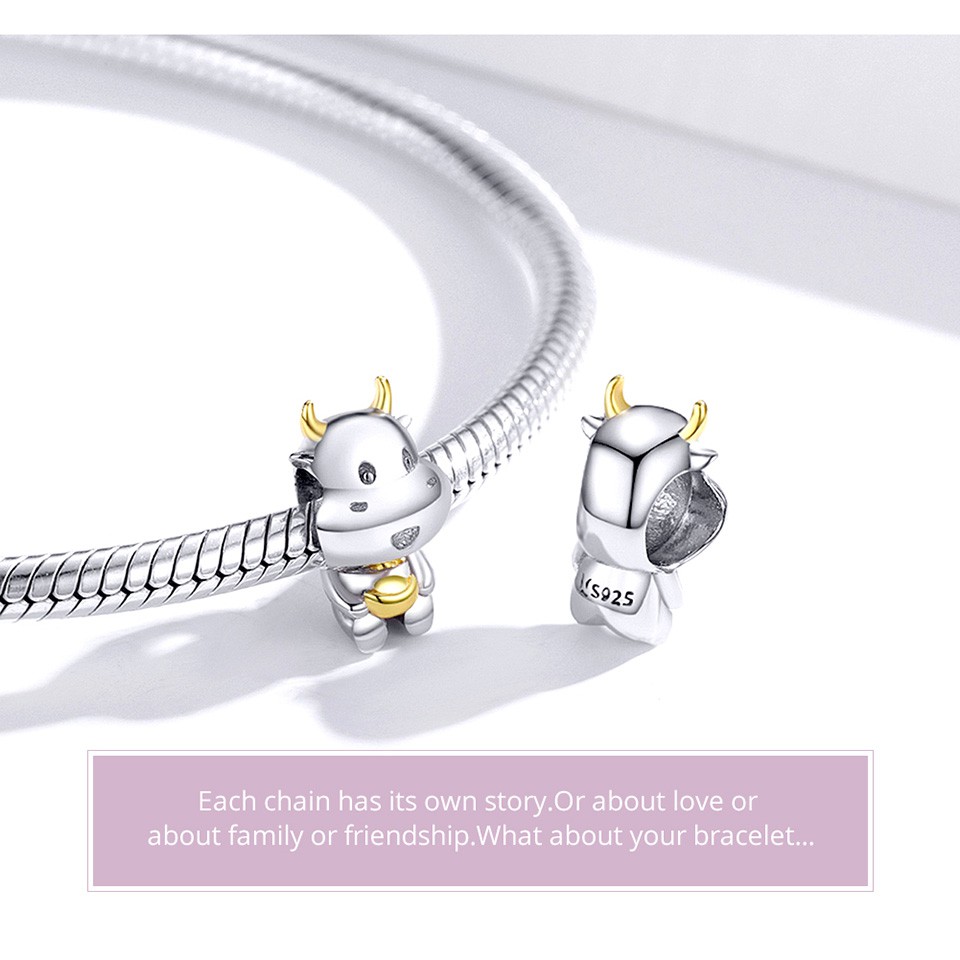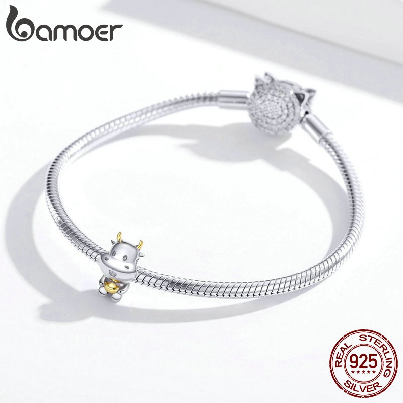 Bamoer 925 Sterling Sliver Sorte Vaca Encantos Pingente De Moda Personalidade Mulheres Pulseira Acessórios Scc1709