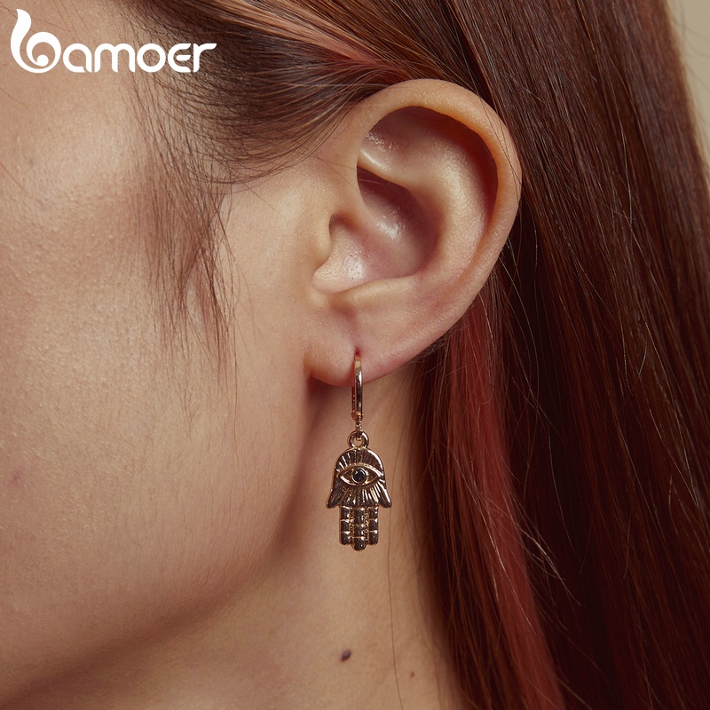 Bamoer AIE072 Brinco Argola De Palma Da Sorte Com Strass Hipoalergênico/Liga Fashion/Bijuteria Para Meninas E Mulheres