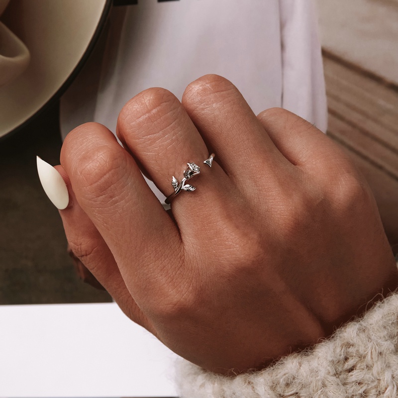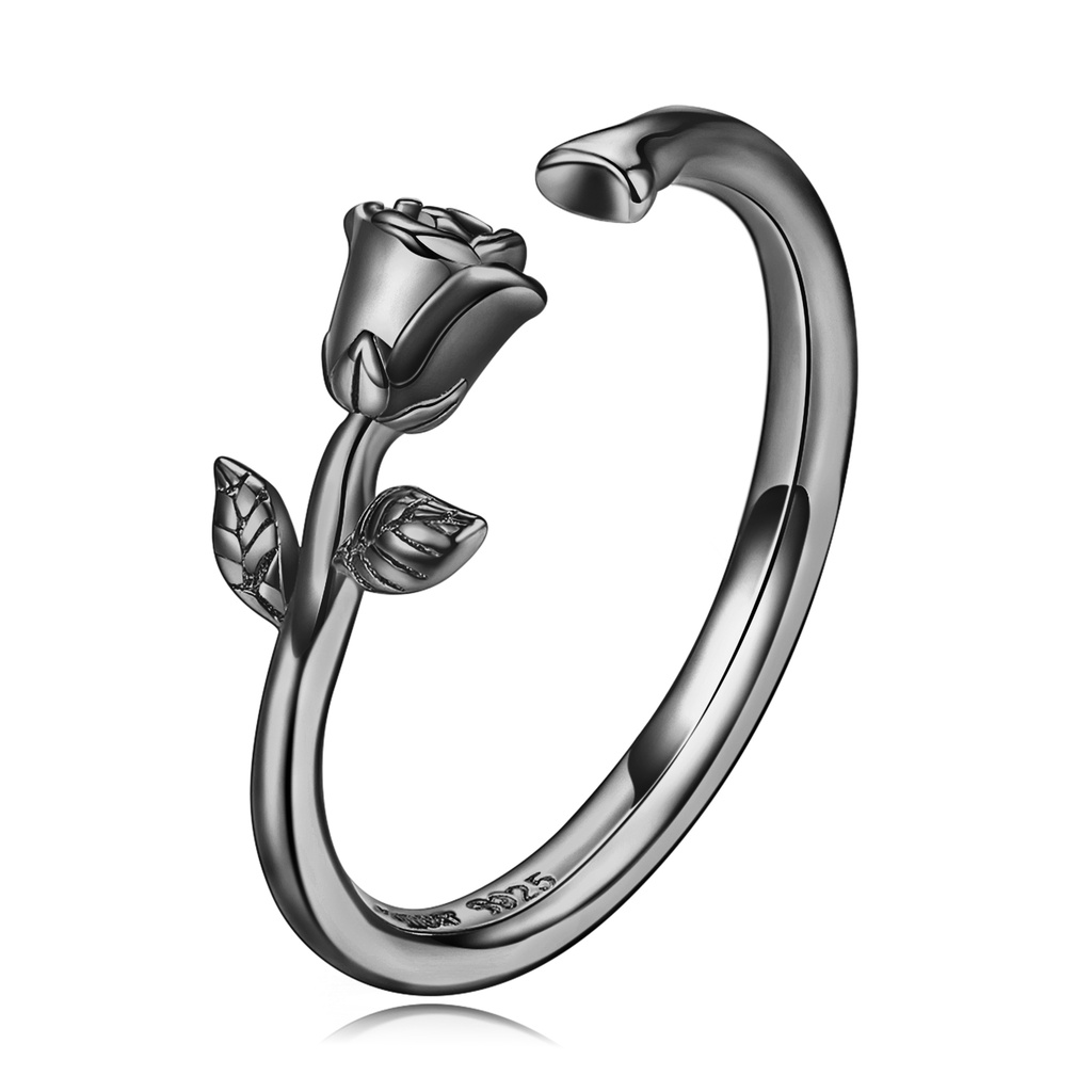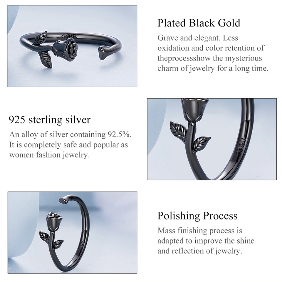 Bamoer Anéis De Prata 925 Todo Preto Todas As Pratas Rosa Anel Acessórios De Moda Presentes Das Mulheres