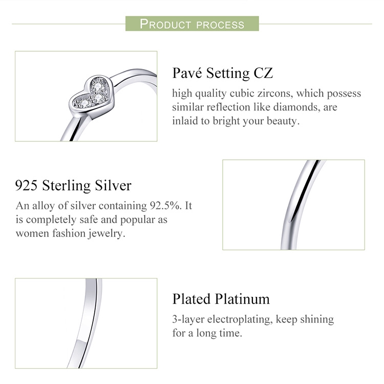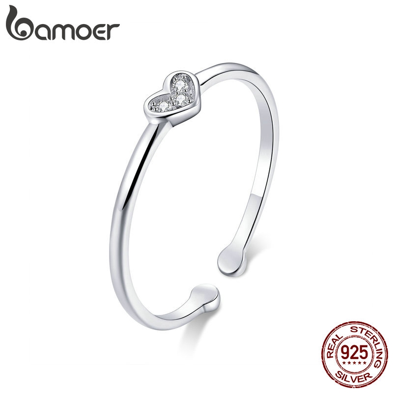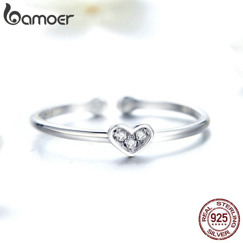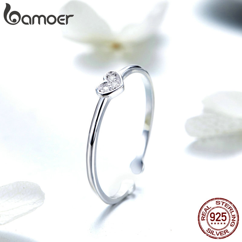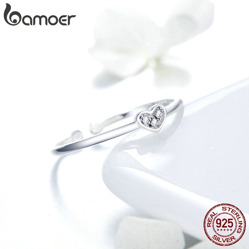Bamoer Anéis Femininos De Prata 925 Com Coração SCR491