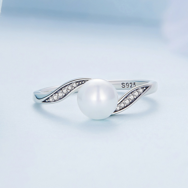 Bamoer Anel De Dedo De Prata 925 Com Concha Para Mulheres Copa Fashion Simples Jóias