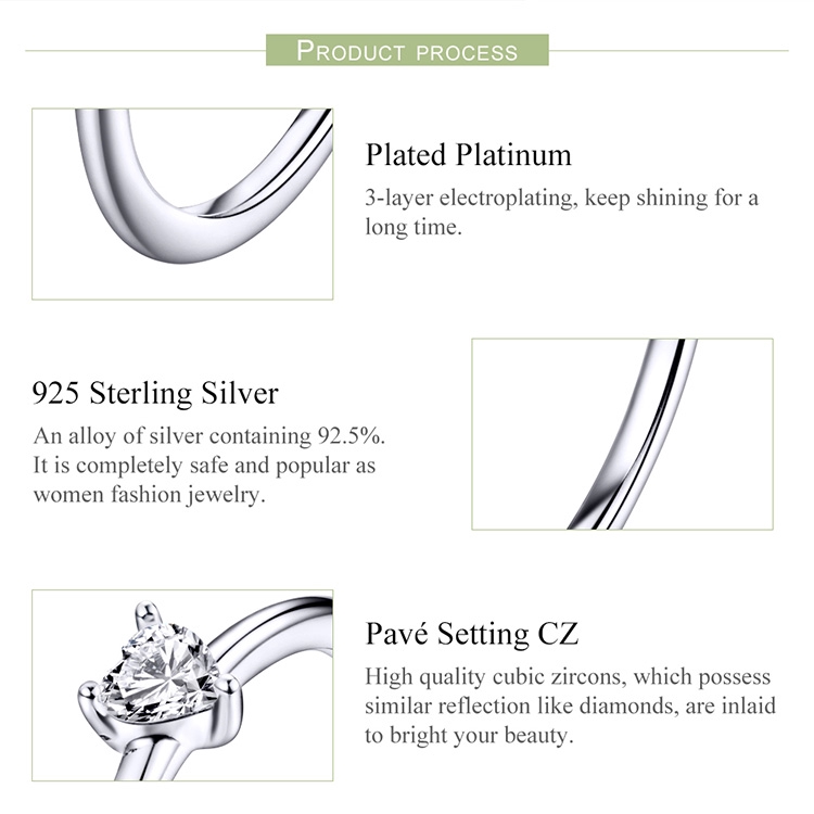 Bamoer Anel Feminino De Prata Esterlina 925 Com Jóia De Cristal Para Mulheres SCR498