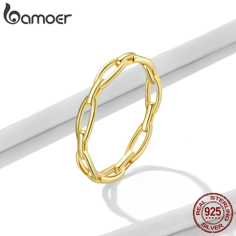 Bamoer Authentic 925 Esterlina Anéis De Design De Corrente De Prata Para Mulheres Moda Jóias BSR211