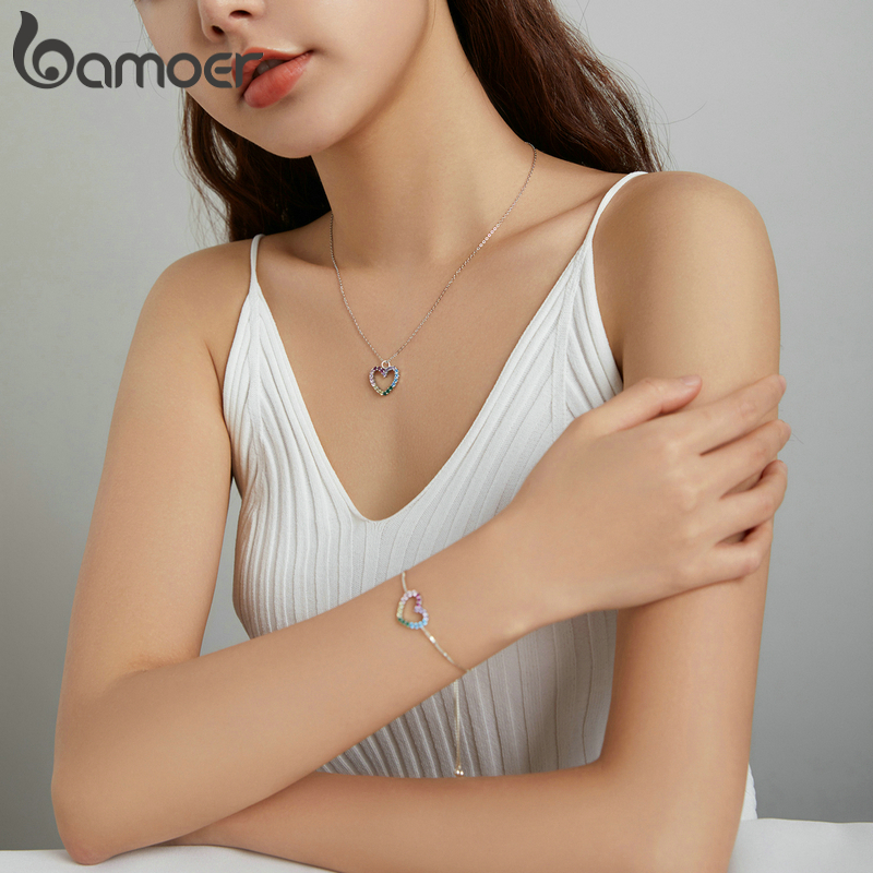 Bamoer Authentic Prata 925 Terno Colar Com Pingente & Bracelet Estilo Encantador Moda Jóias Para As Mulheres & Meninas Fit Presentes Zhs230