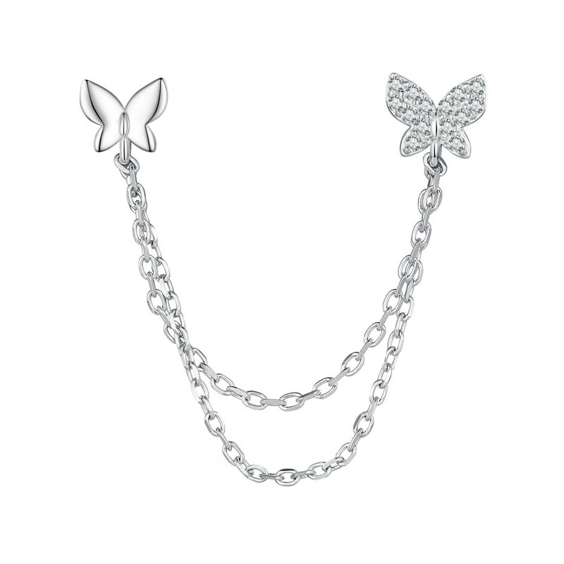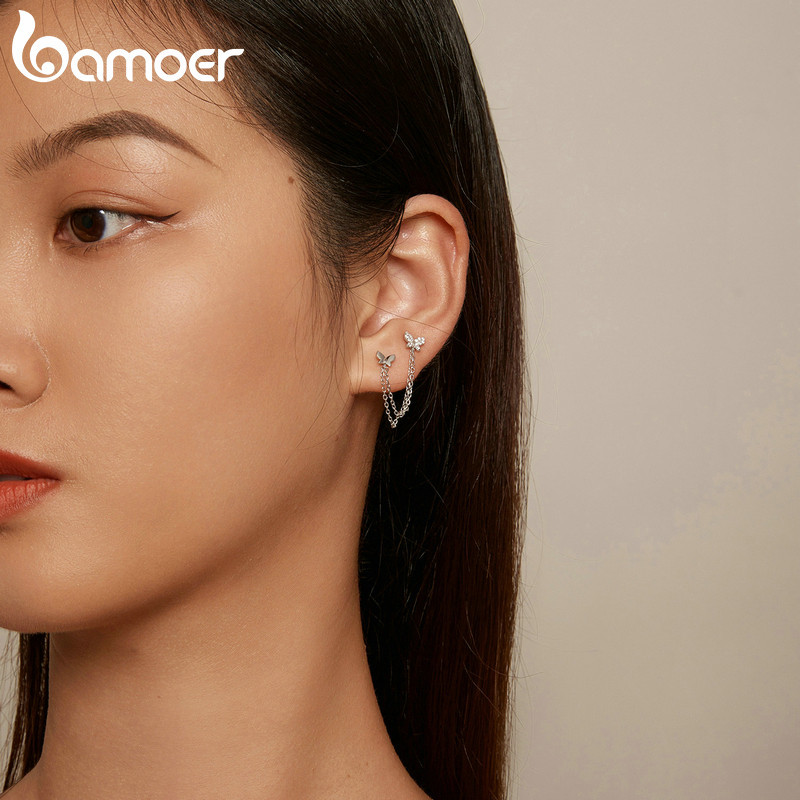Bamoer Brinco Único Borboleta Prata 925 Franja Longa Presente