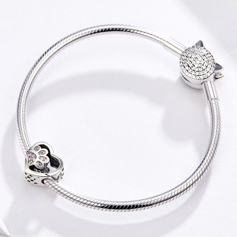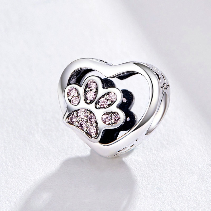 Bamoer Charm Coração com Pegada de Cachorro ou Gato para Pulseira​ AIC032