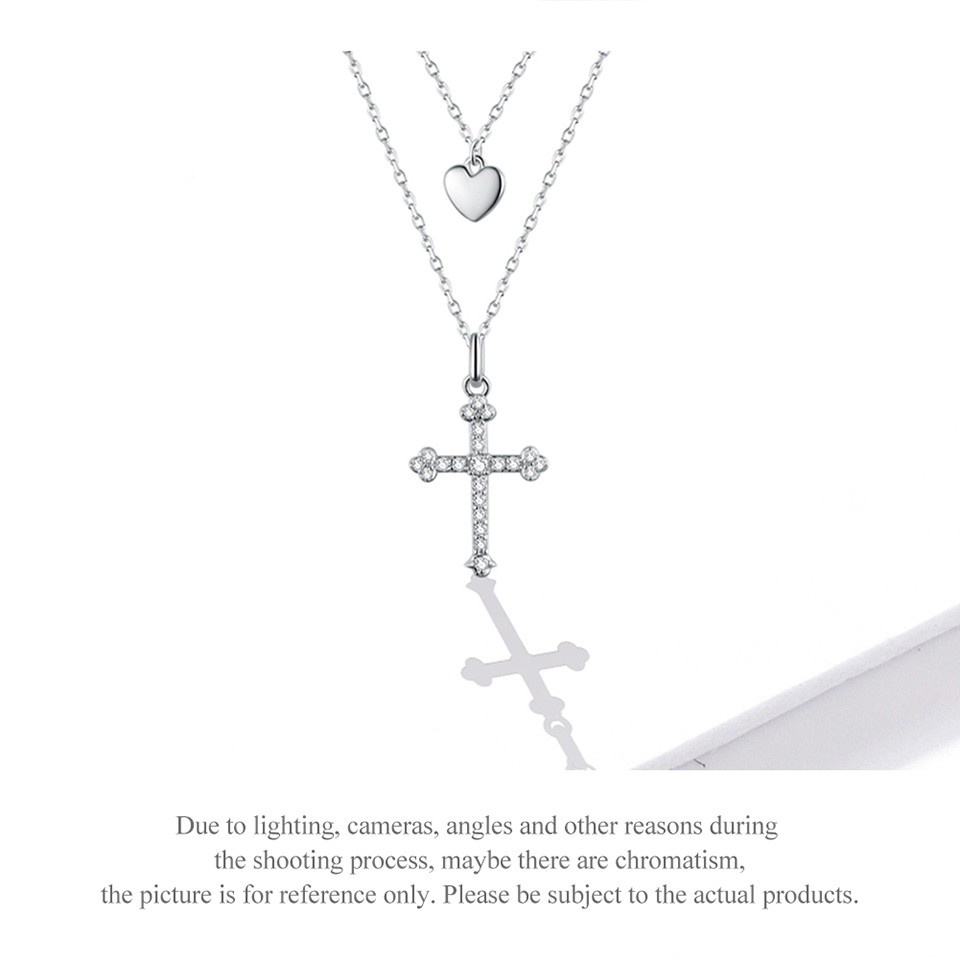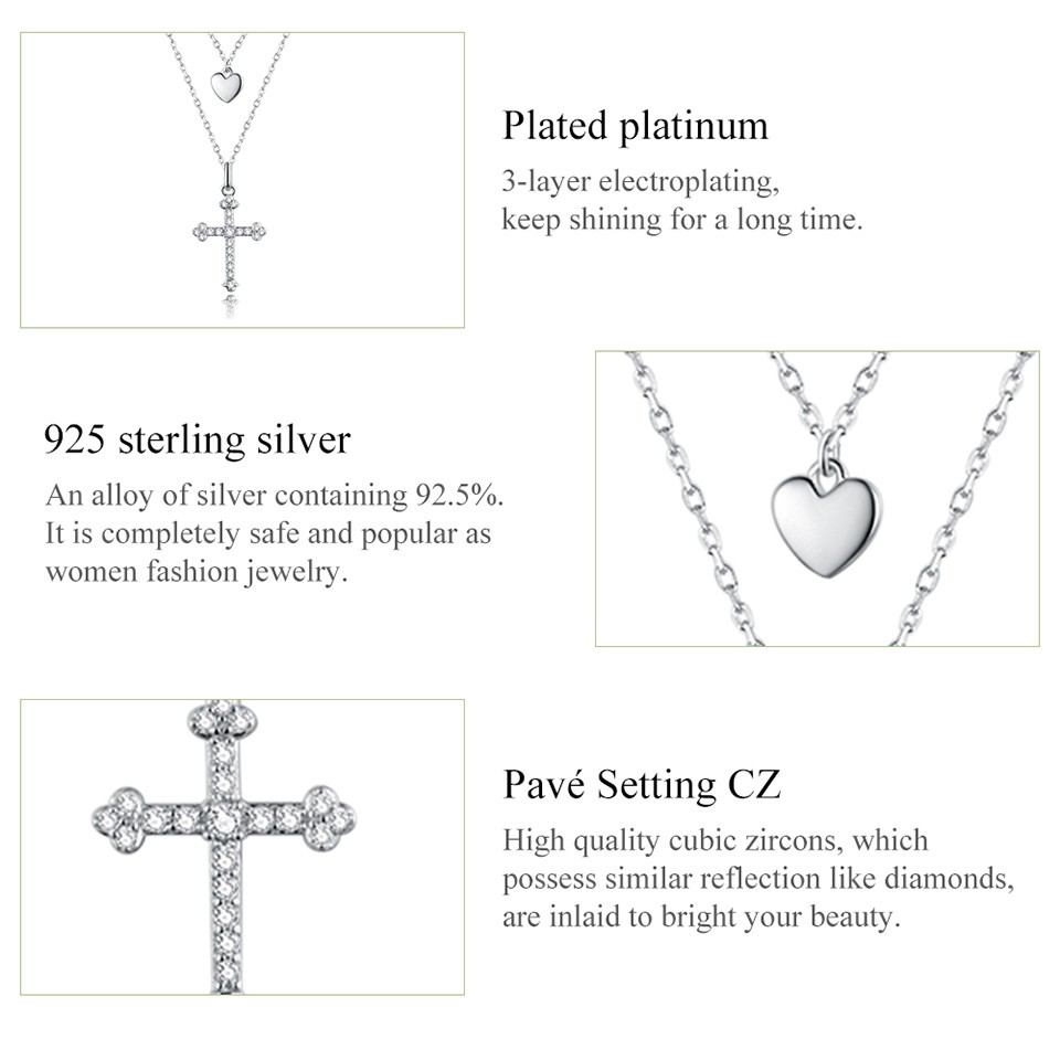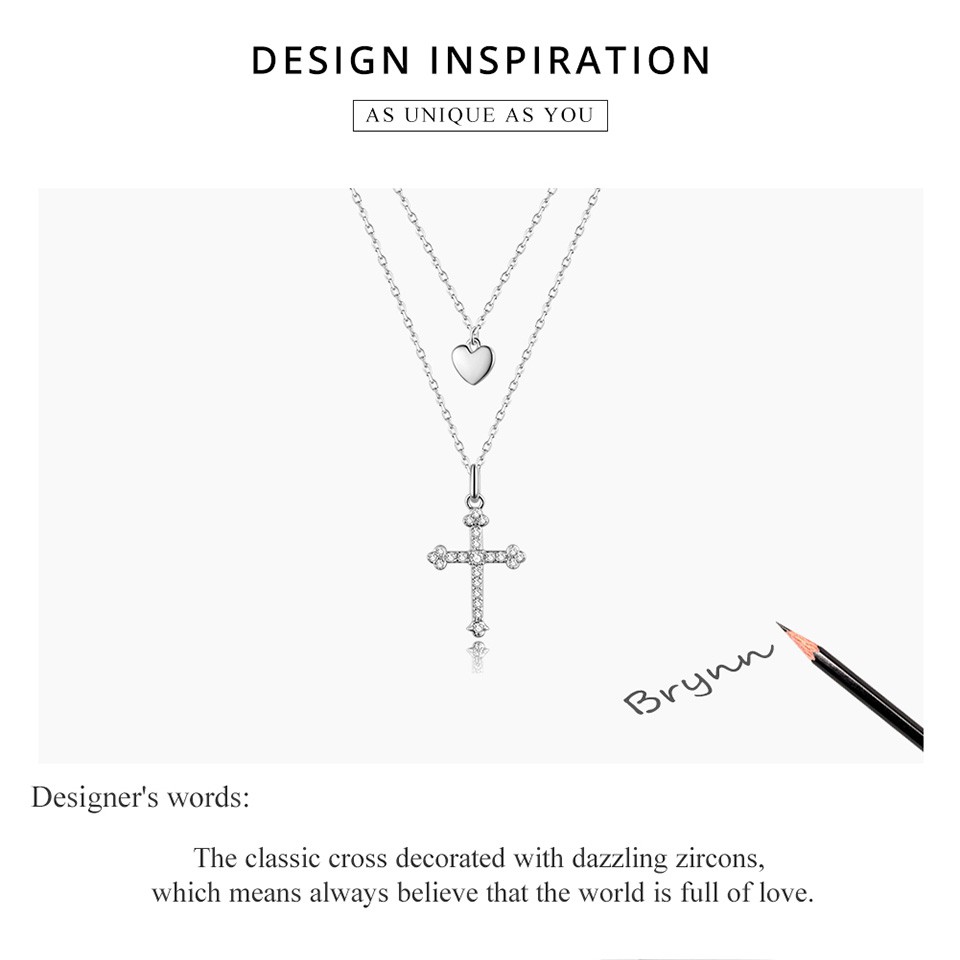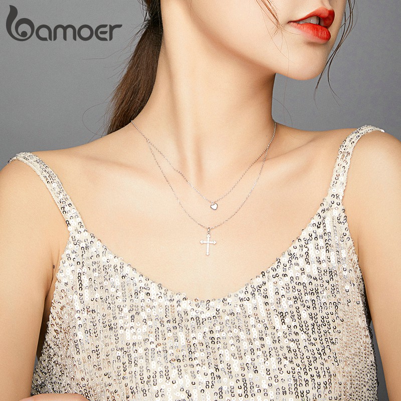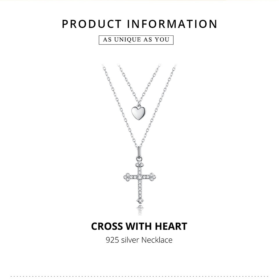 Bamoer Cruz Com Colar De Coração Para As Mulheres 925 Sterling Silver Limpar Cubic Zircon Cadeia Colar Moda Jóias Bsn197