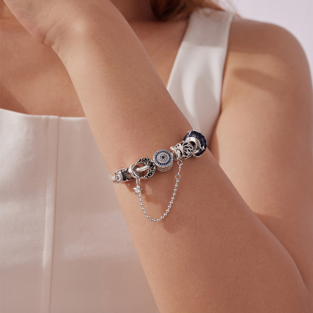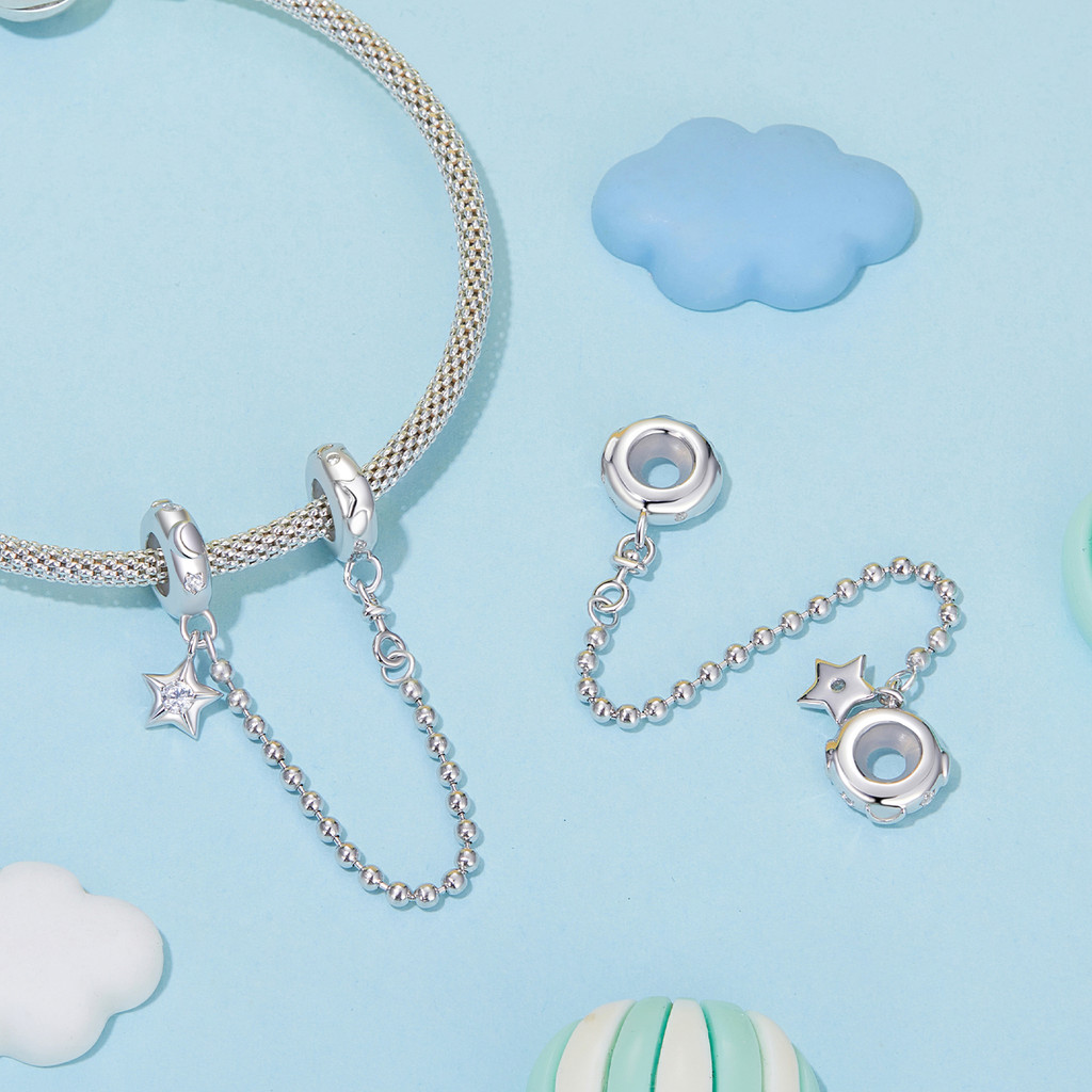 Bamoer Encantos Estrelado Noite Lua Série S925 Prata Esterlina Galáxia Tema DIY Presente Perfeito Para Ela