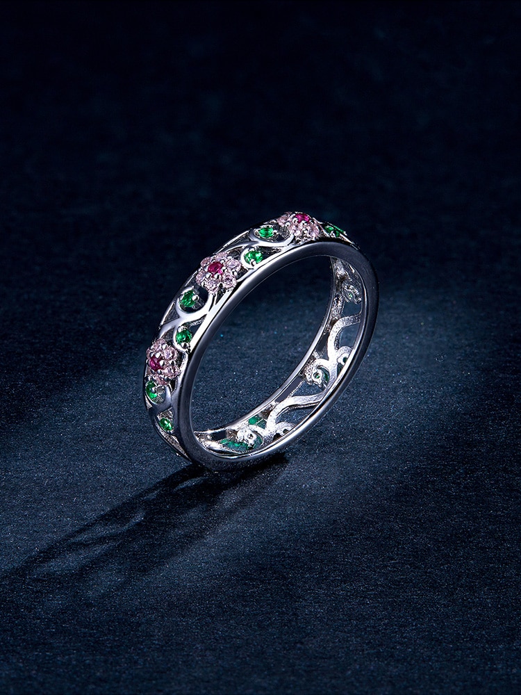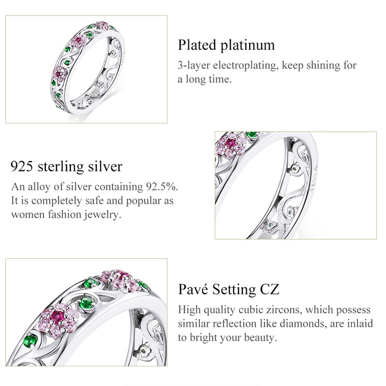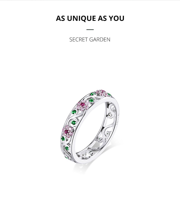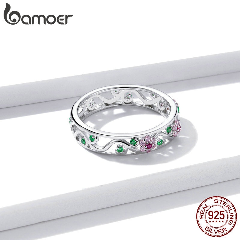Bamoer Genuine 925 Sterling Silver Secret Garden Finger Rings for Women Wedding Band Engagement Statement Jewelry Anel BSR132