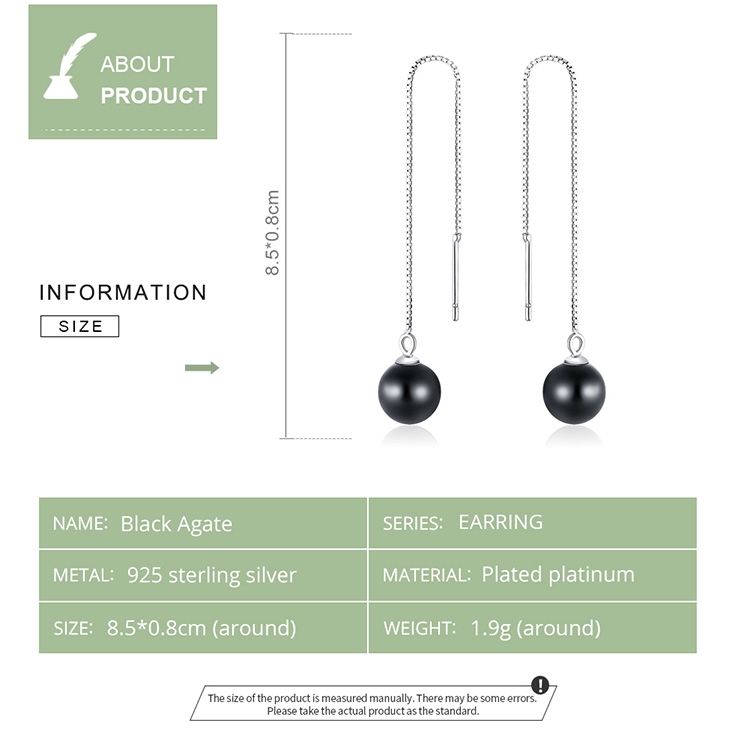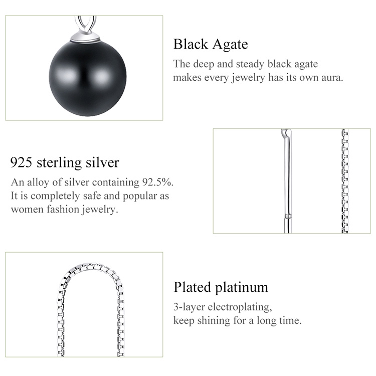 Bamoer Linha Longa Feminina Com Pedra Preta/925 De Prata Esterlina SCE878