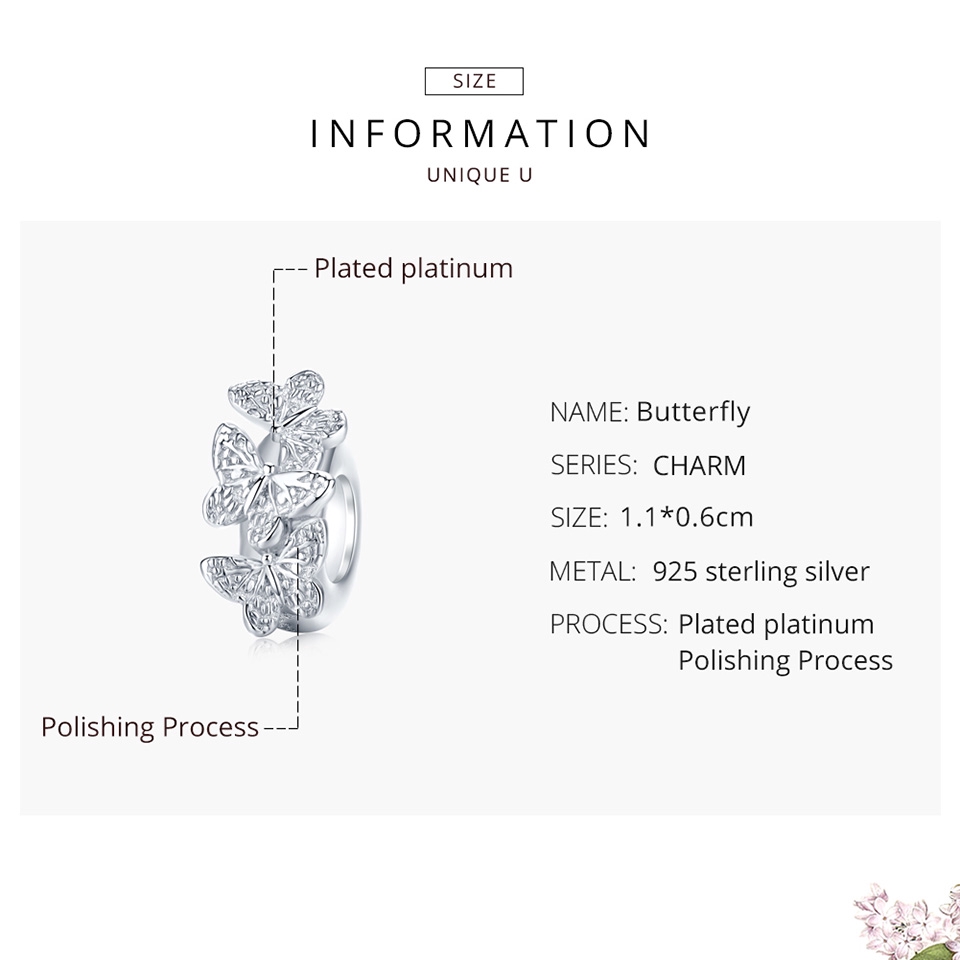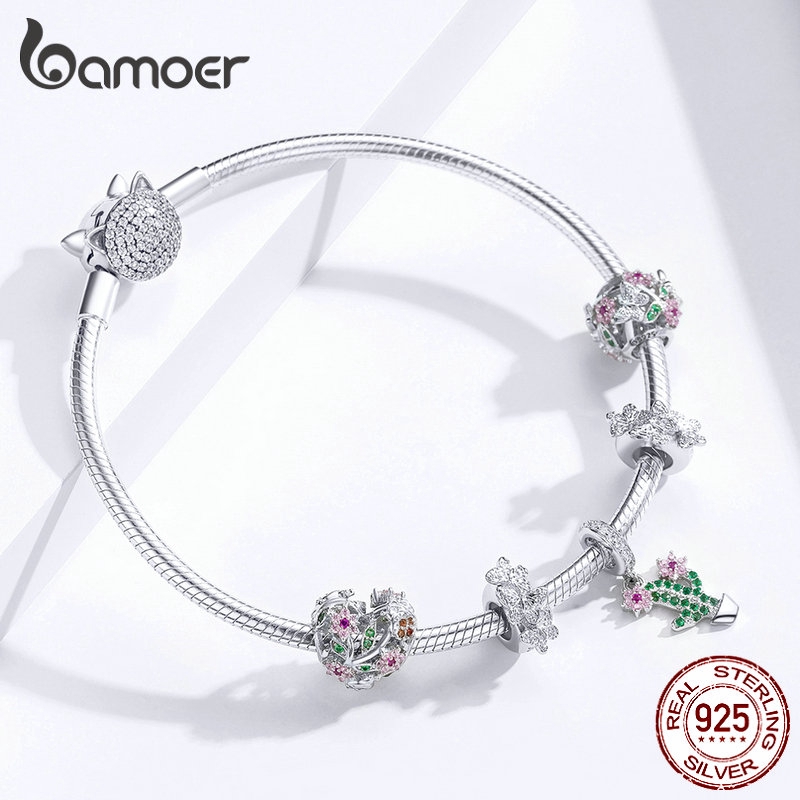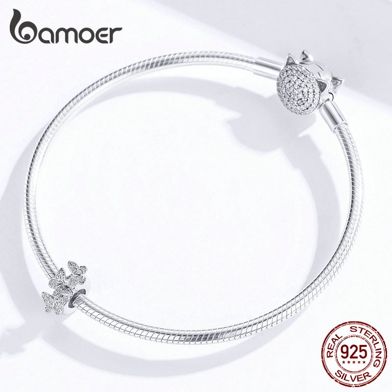 Bamoer Moda Charme S925 Prata Original Borboleta Pulseira Jóias Acessórios Femininos