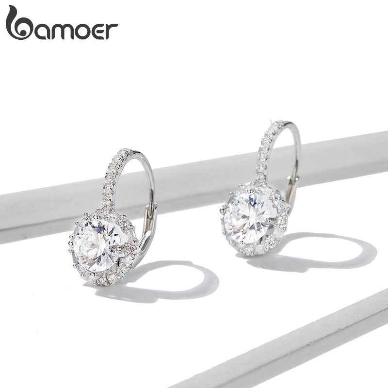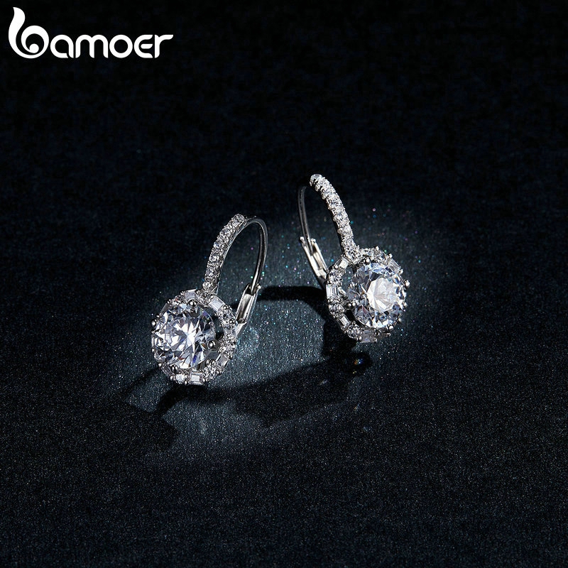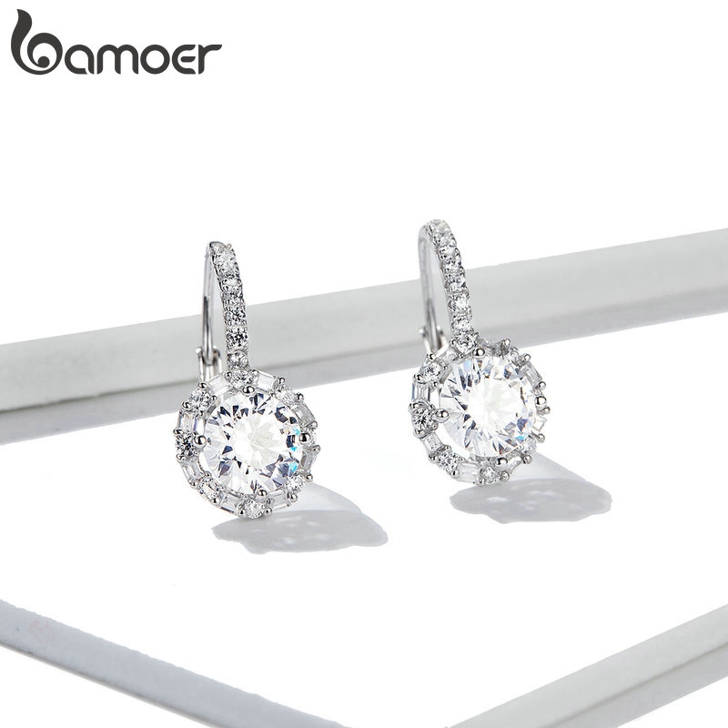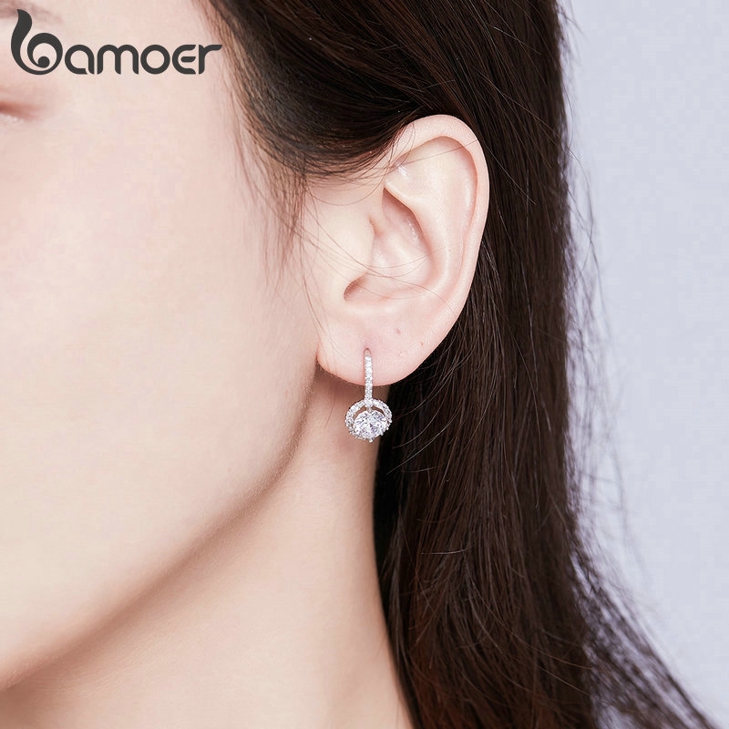 Bamoer Mulheres Dangle Brincos Com Brilhante Cubic Zircon Prata Esterlina 925