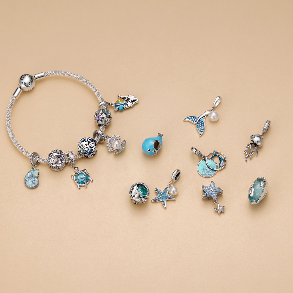 Bamoer Nova Chegada 925 Sterling Silver Underwater World Peixe Rodada Charme Beads Fit Pulseiras Colares Fazer Jóias