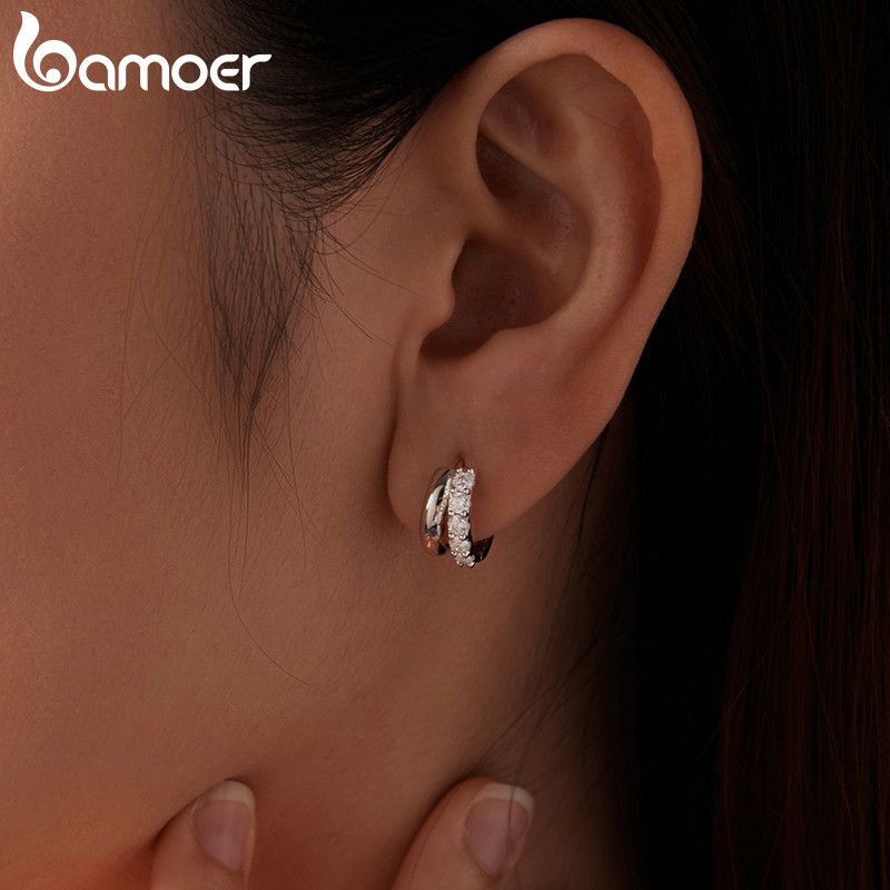 Bamoer Original 925 Brincos De Prata Esterlina Dupla Camada Moissanite Jóias Presente Feminino
