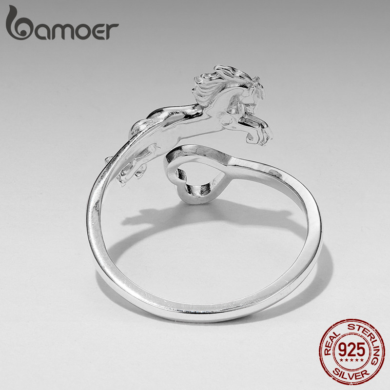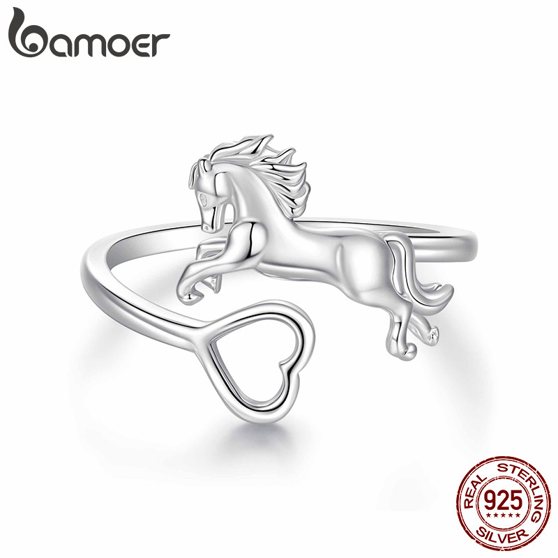 Bamoer Original 925 Prata Esterlina Anel Ajustável Formato De Coração Cavalo Design Joias Presente Feminino