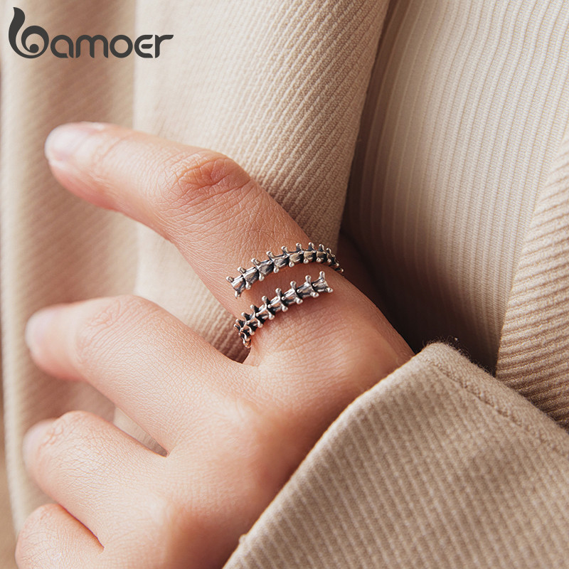 Bamoer Original 925 Prata Esterlina Anel Ajustável Halloween Coluna Personalizado Design De Moda Jóias Presente Feminino