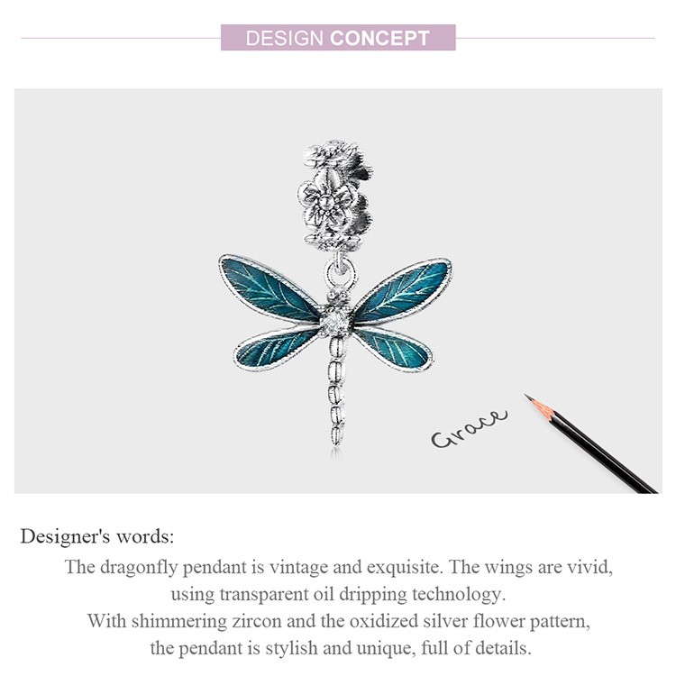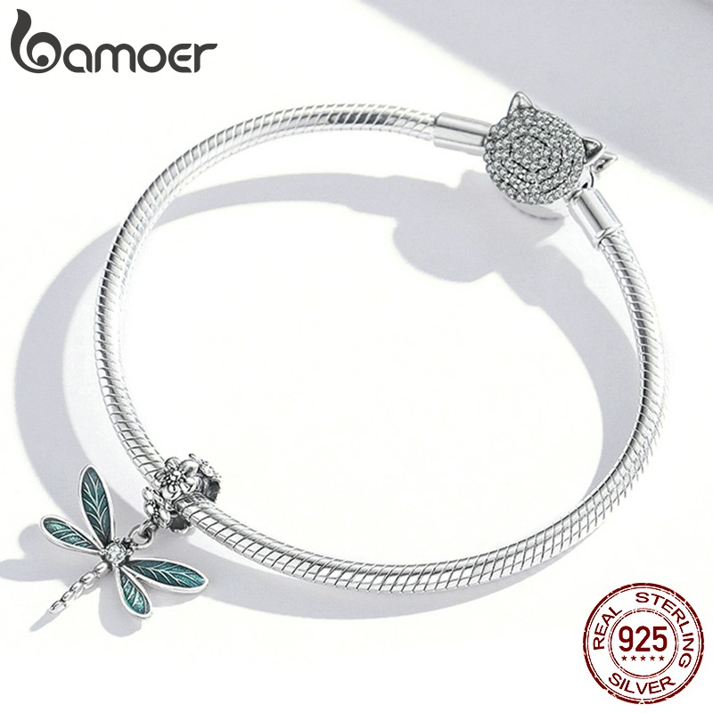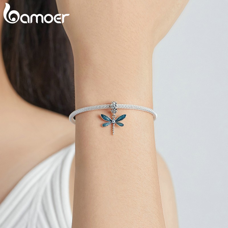 Bamoer Pingente de Libélula Prata 925 com Abertura 4.5mm para DIY de Joias BSC521