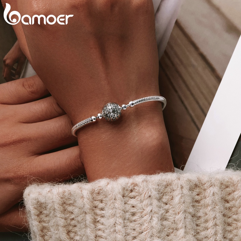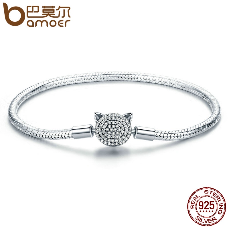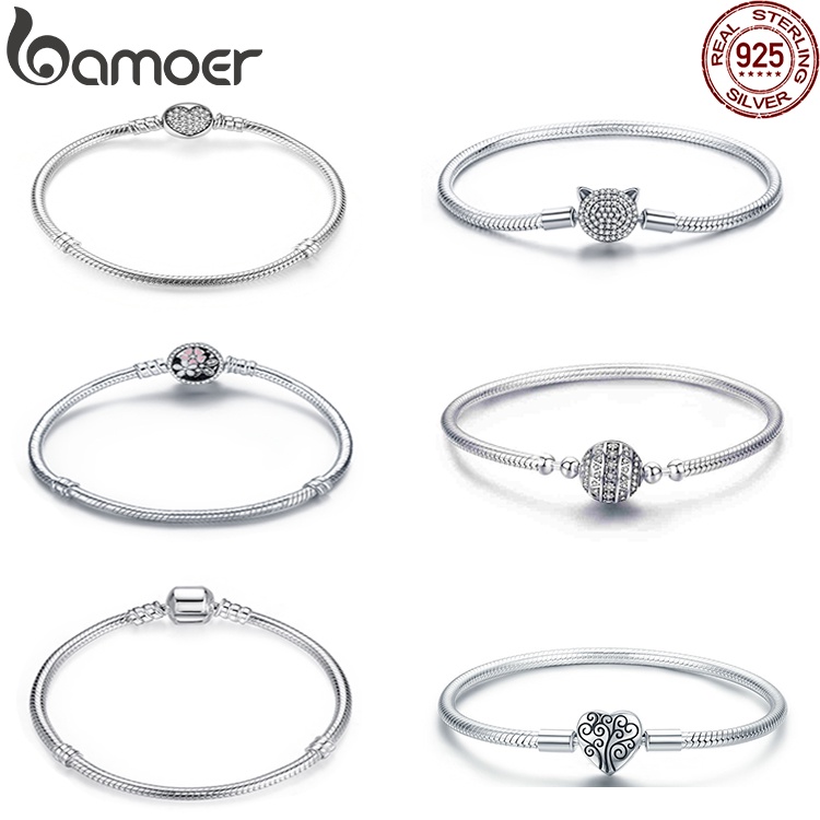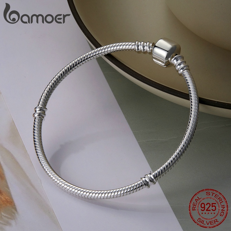Bamoer Prata 925 Pulseira 17cm & 18cm 19cm 20cm Comprimento Cobra Cadeia Moda Jóias