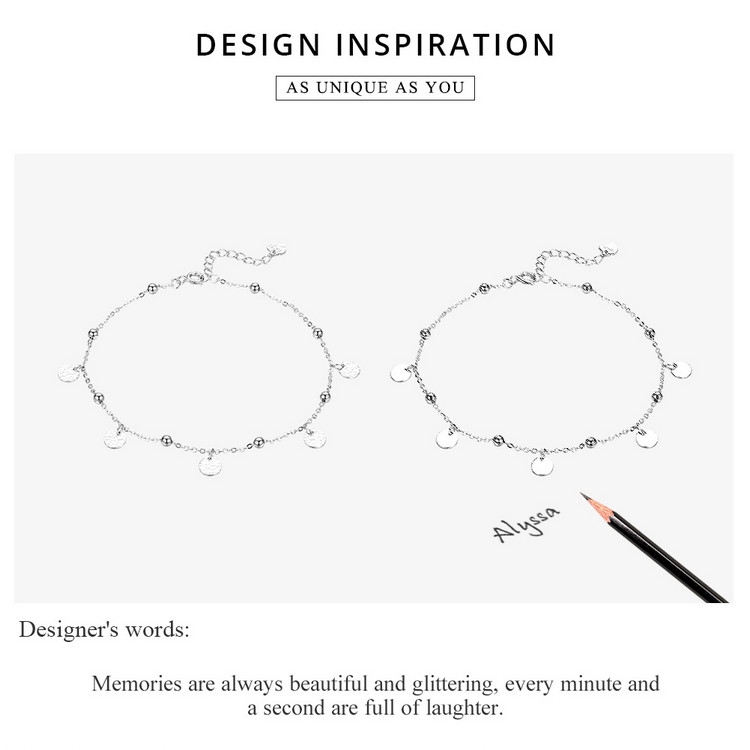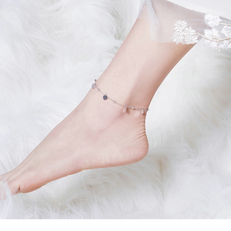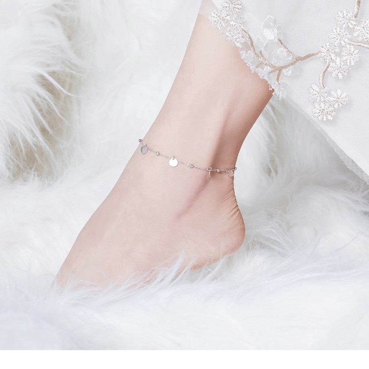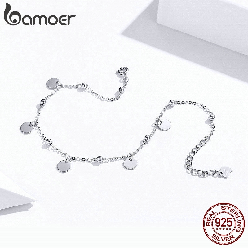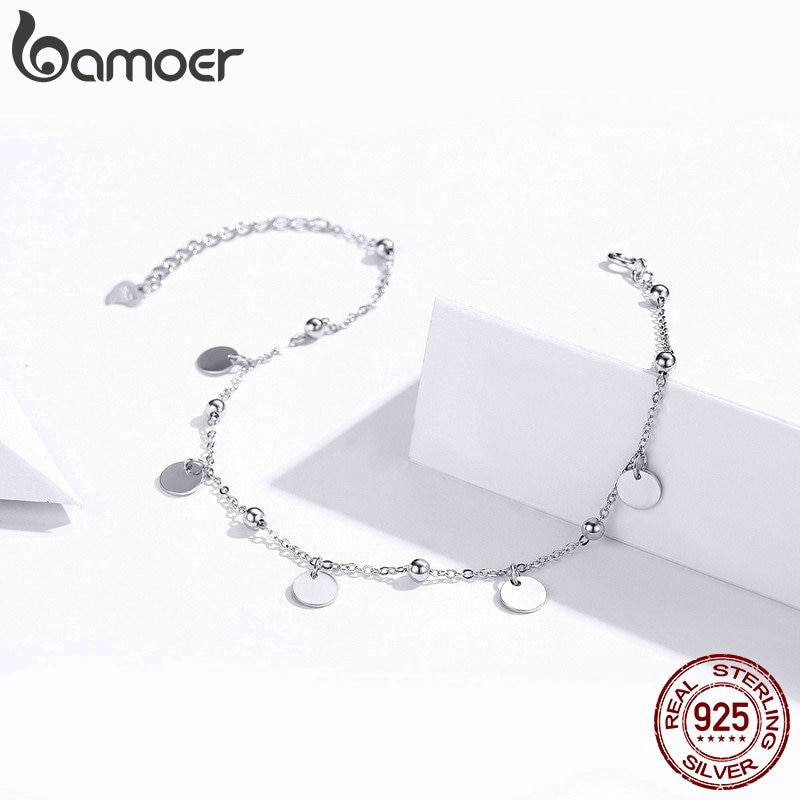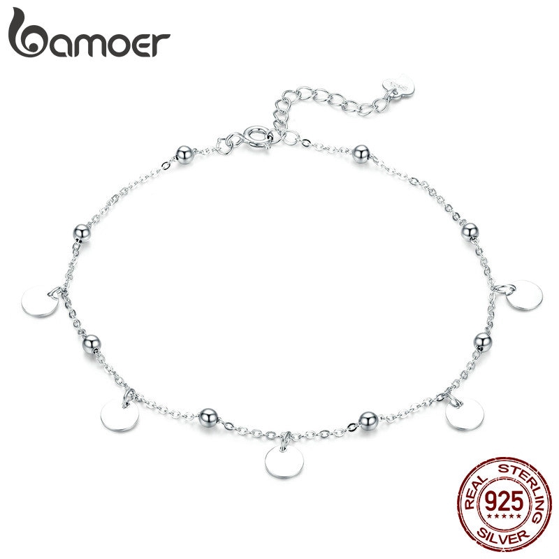 Bamoer Prata Beads Tornozeleiras 925 Sterling Silver Geométrica Minimalista Verão Moda Pé Jóias Pulseira Para Tornozelo Sct011