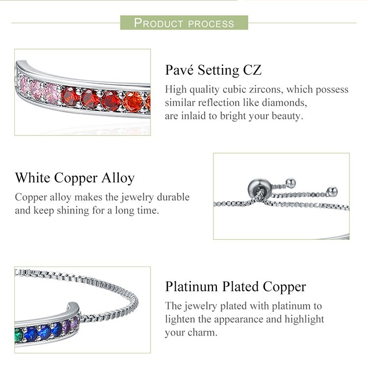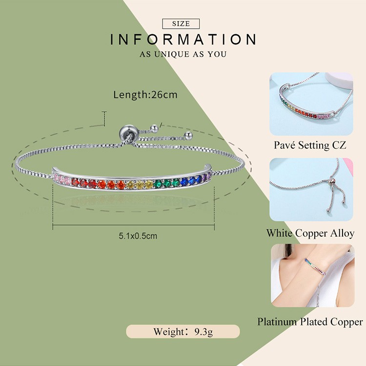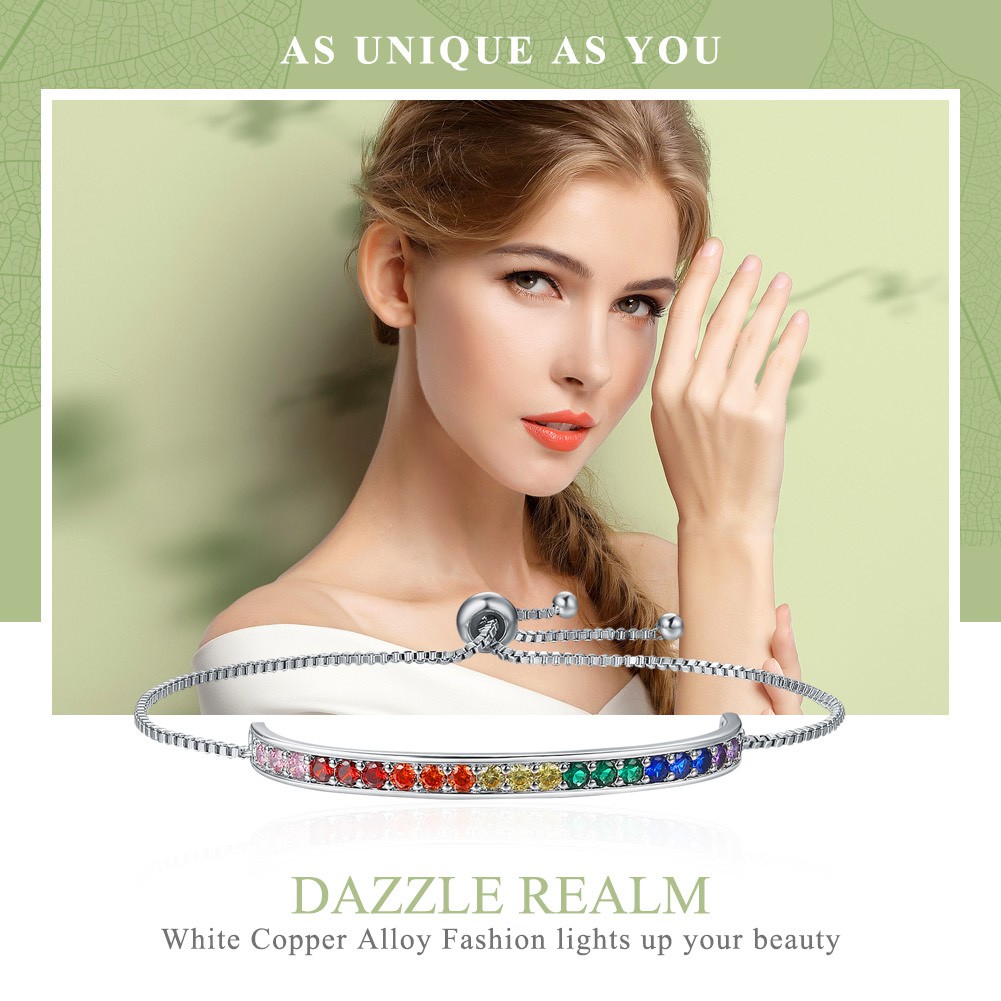 Bamoer Pulseira Colorida Com Zircônia Cúbica Fashion Feminina Yib036