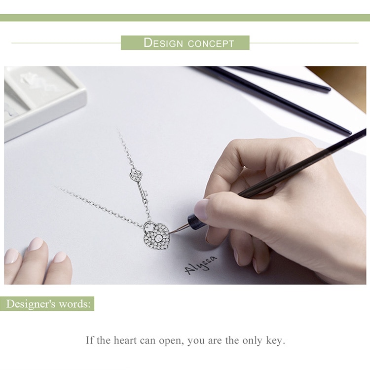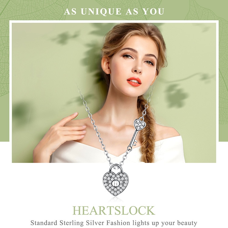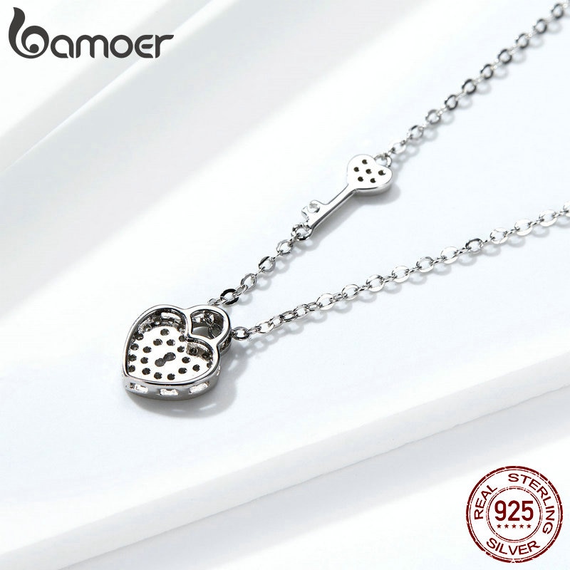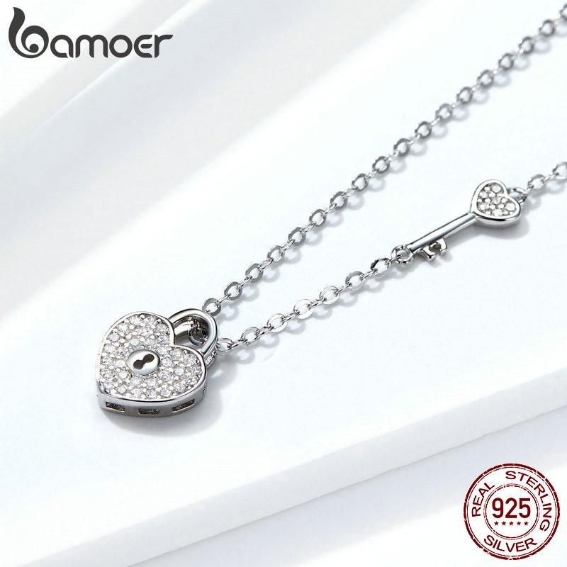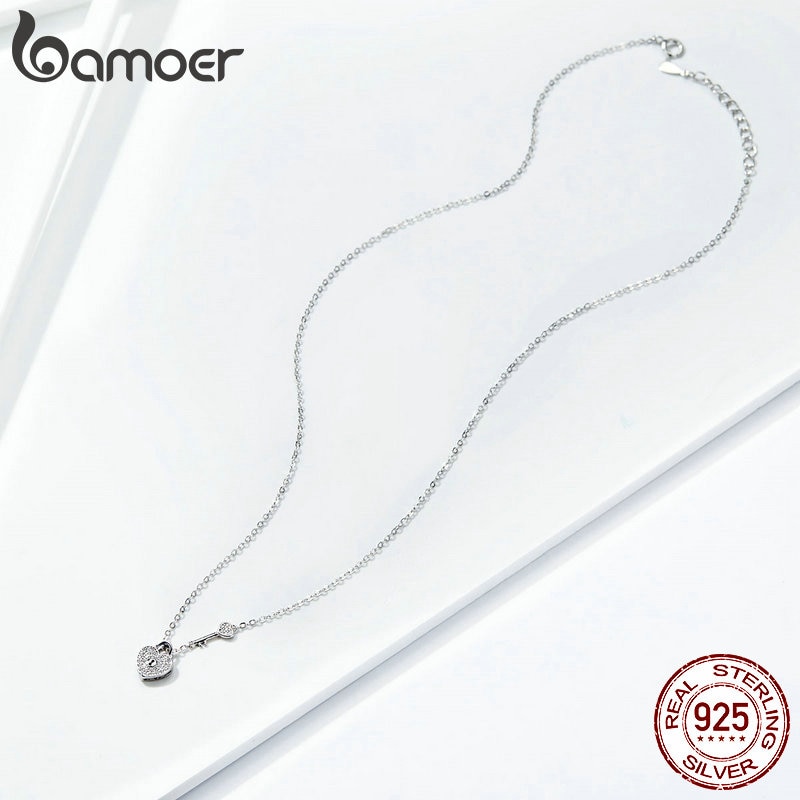 Bamoer Pure 925 Sterling Silver Limpar Cz Coração Bloqueio E Link Chave Cadeia Gargantilha Colar Para As Mulheres Declaração De Jóias De Luxo Scn315