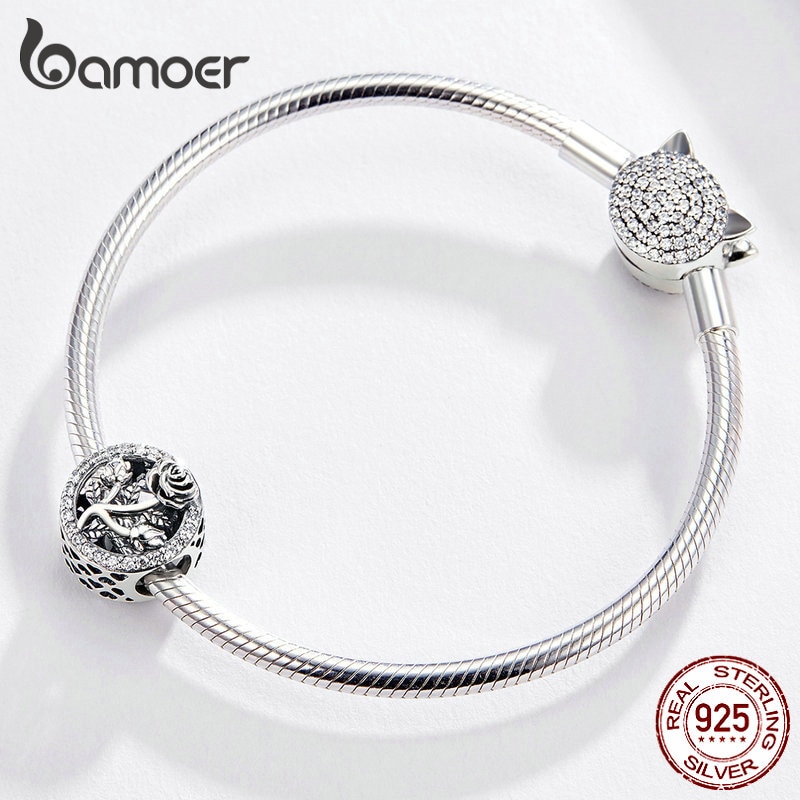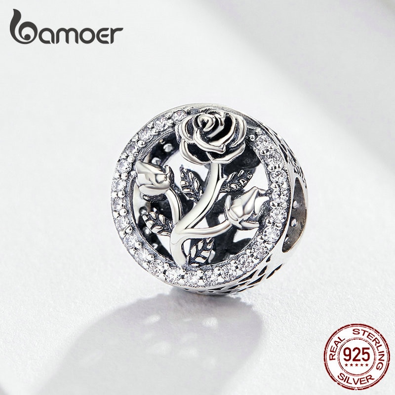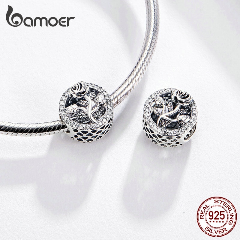 Bamoer Retro Rose Flor Contas 100 % 925 Sterling Silver Rodada Bead Encantos fit Cobra Pulseira Moda Jóias SCC1189