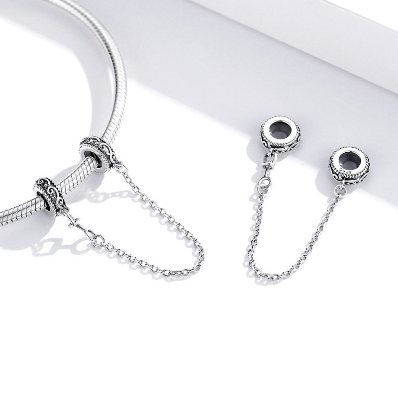 Bamoer Silver 925 Safty Chain E Long Pendant Flower Beads Para Presentes De Aniversário Femininos