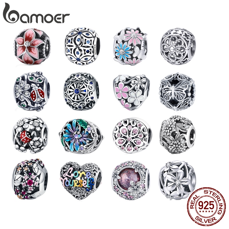 Bamoer Silver 925 Vintage Garden Sunflower Rose Maple Leaf DIY Beads for Bracelet