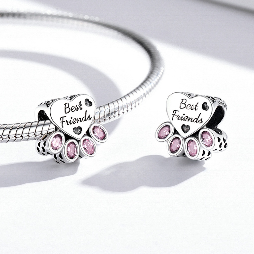 Bamoer Sterling Silver 925 Paw Hanging Bead of Cat and Dog Bijuteria Para Pulseira SCC2476-A