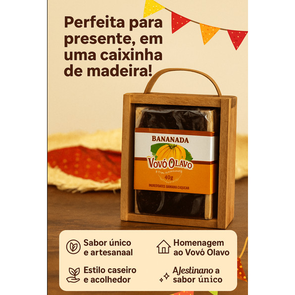 Bananada Vovô Olavo – 40g | Caixinha de Madeira para Presente