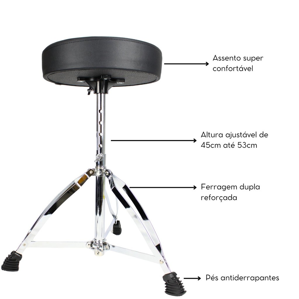 Banco Bateria Almofadado Cromado Groove Gd702