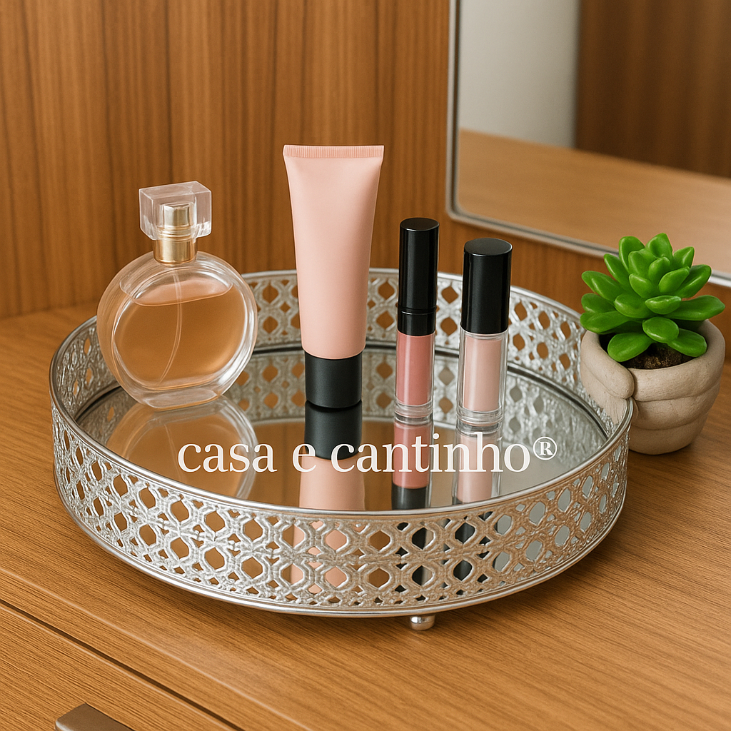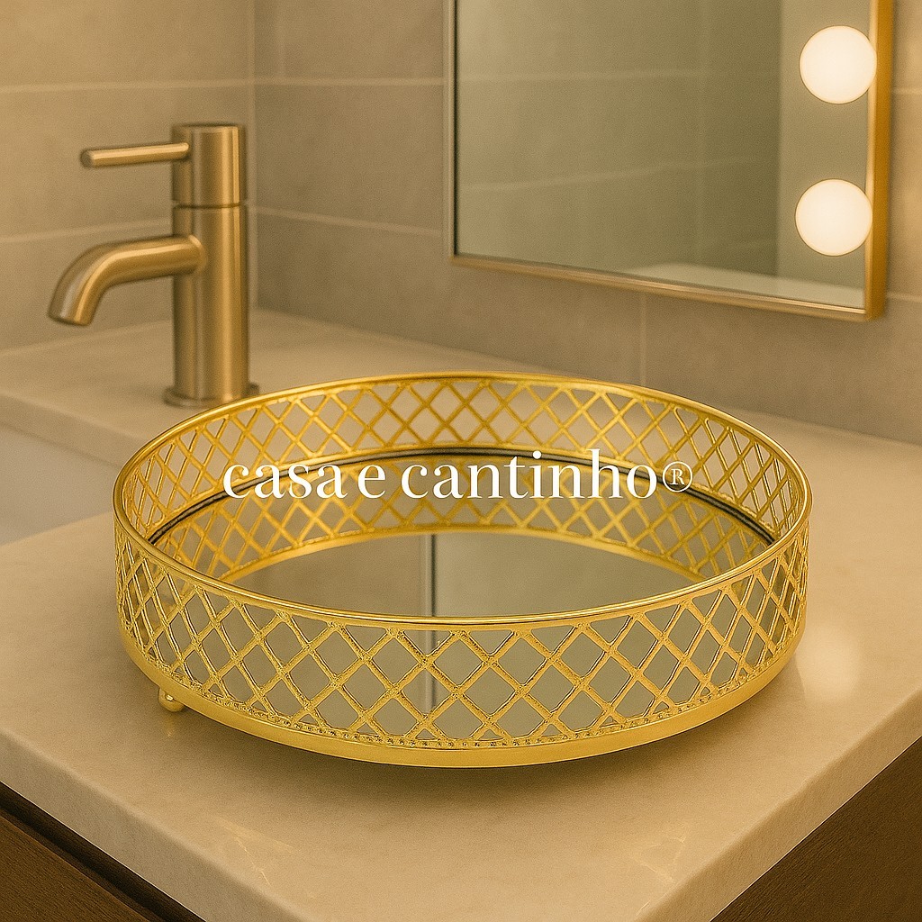 Bandeja Decorativa Espelhada em Metal Multiuso Retangular ou Redonda Dourada ou Prata
