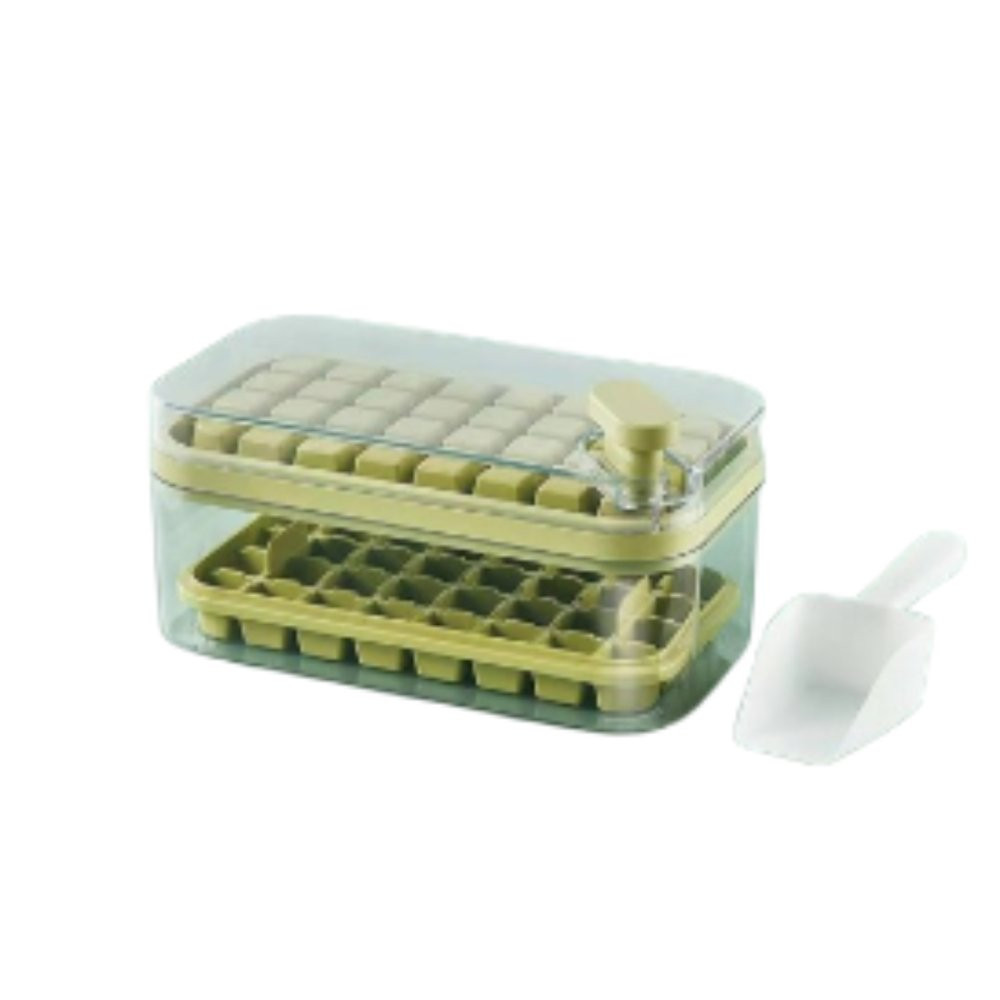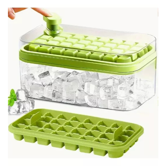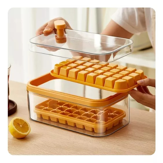 Bandeja Dupla de Cubos de Gelo com Tampa Forma Cubo de Gelo Caixa Dupla Silicone 64 Cubos de Gelo