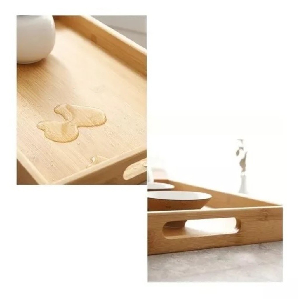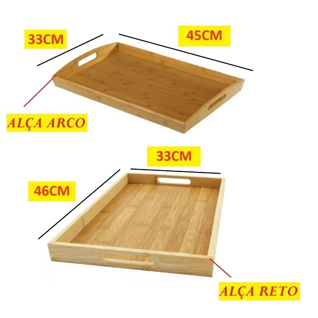 Bandeja Retangular De Bambu 46x33Cm E 40x28Cm Top Útil Com Arco Ou Reto Alça Reta