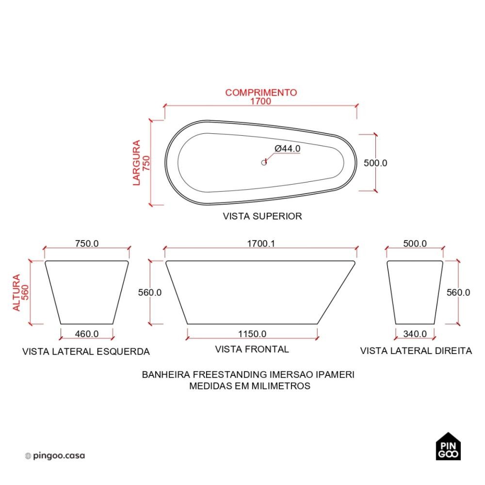 Banheira Freestanding Imersao Ipameri Pingoo - Branco