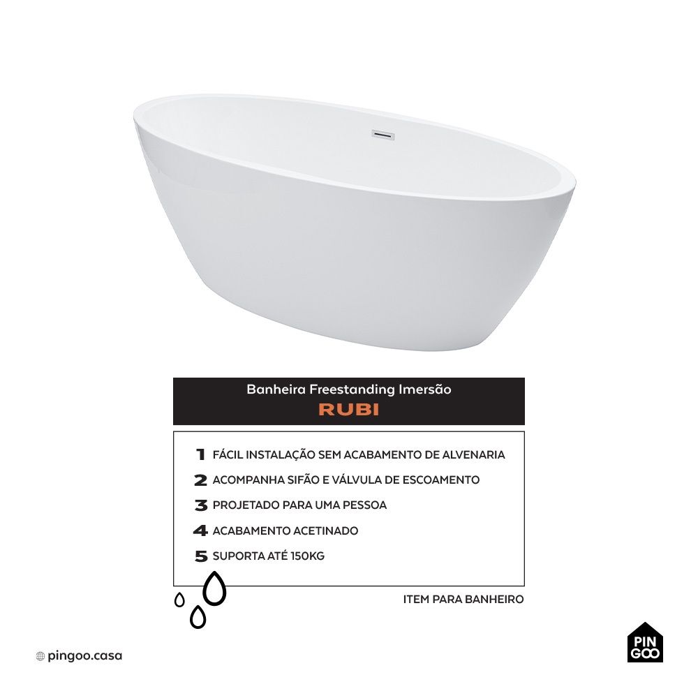 Banheira Freestanding Imersao Rubi Pingoo - Branca