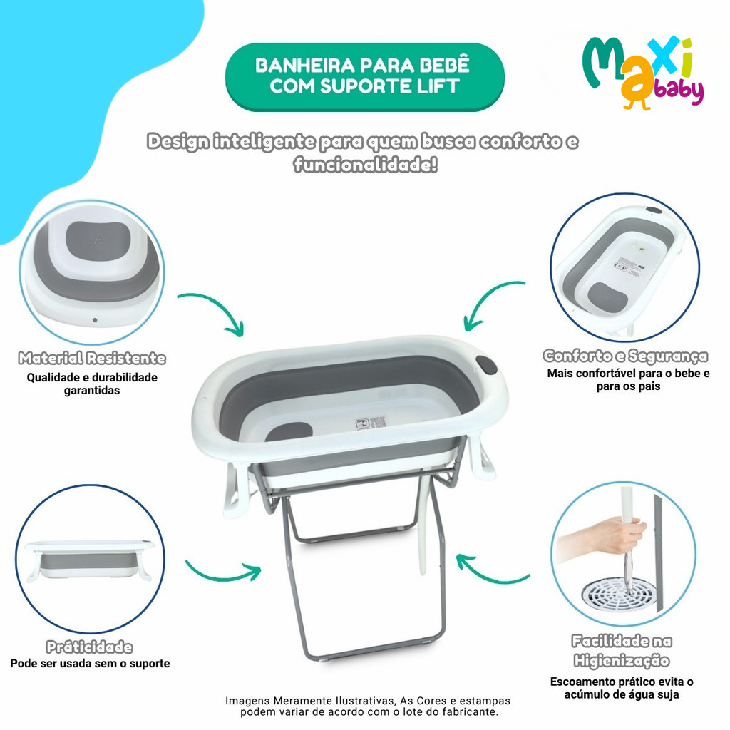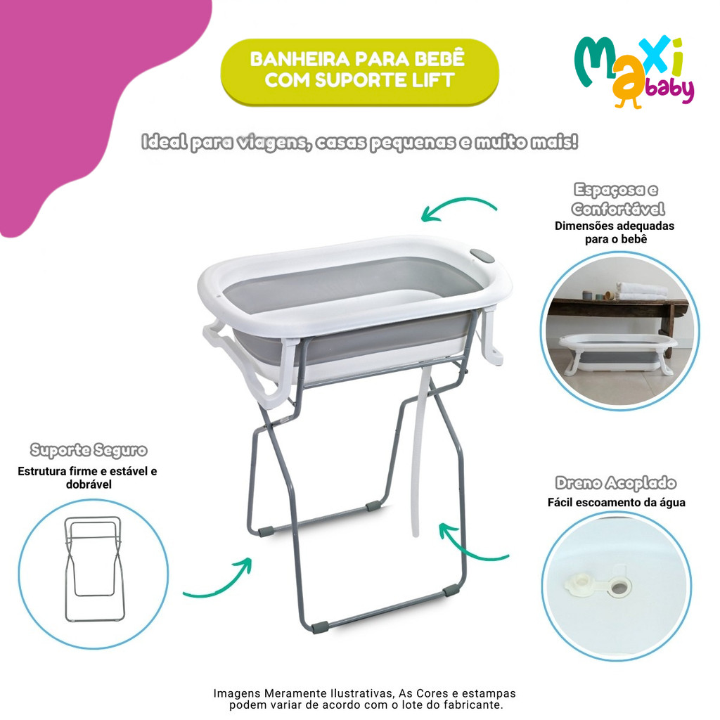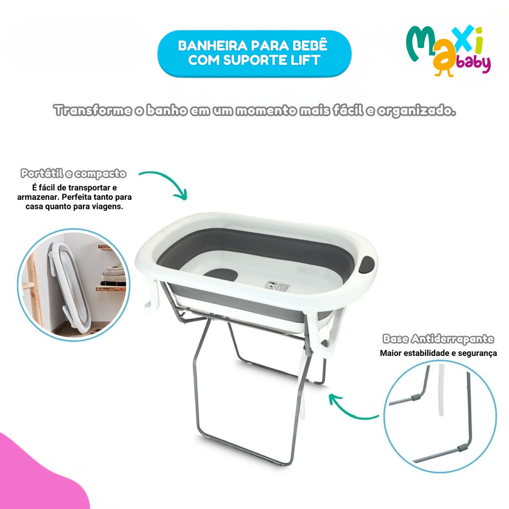 Banheira Para Bebê Com Suporte Lift Branco - Maxi Baby