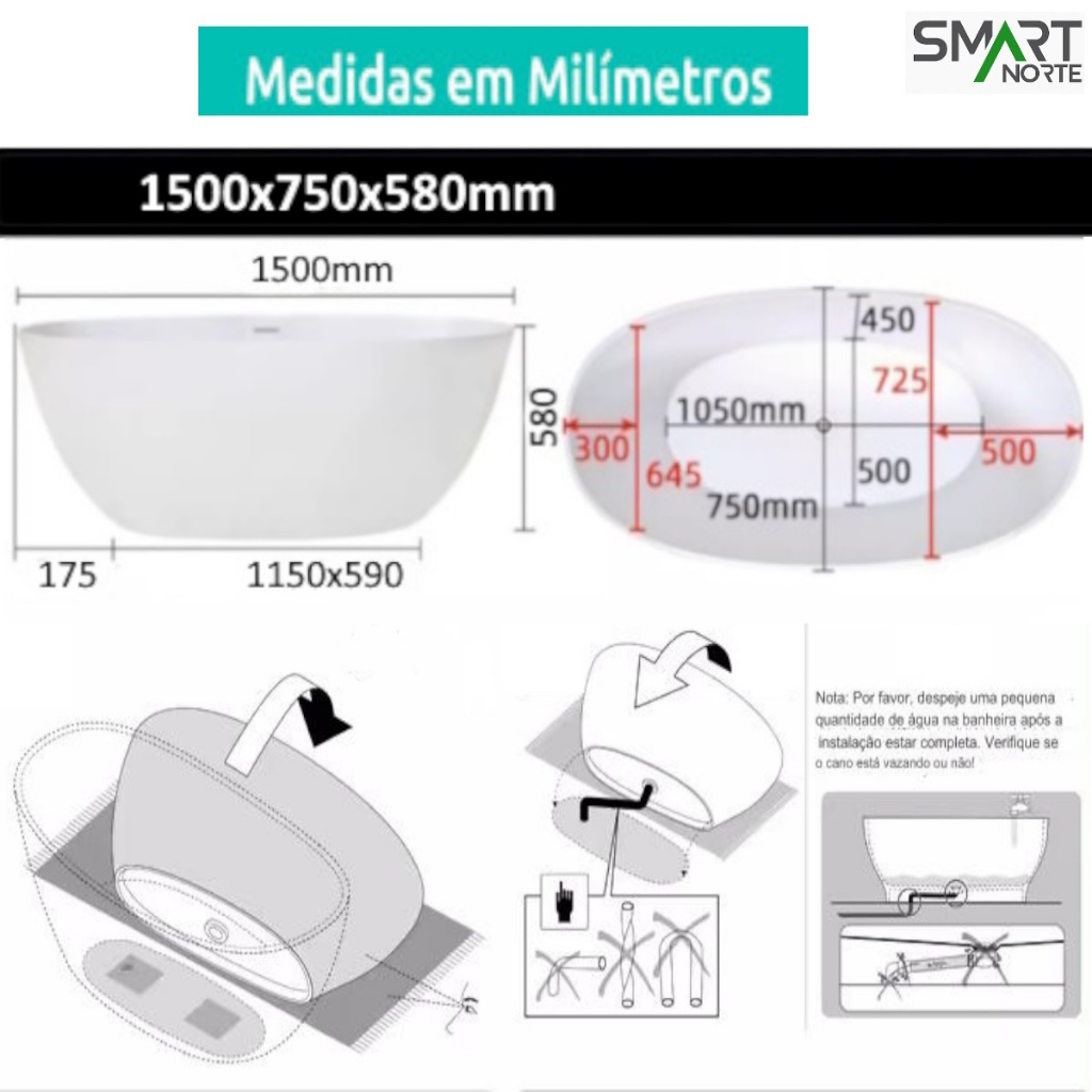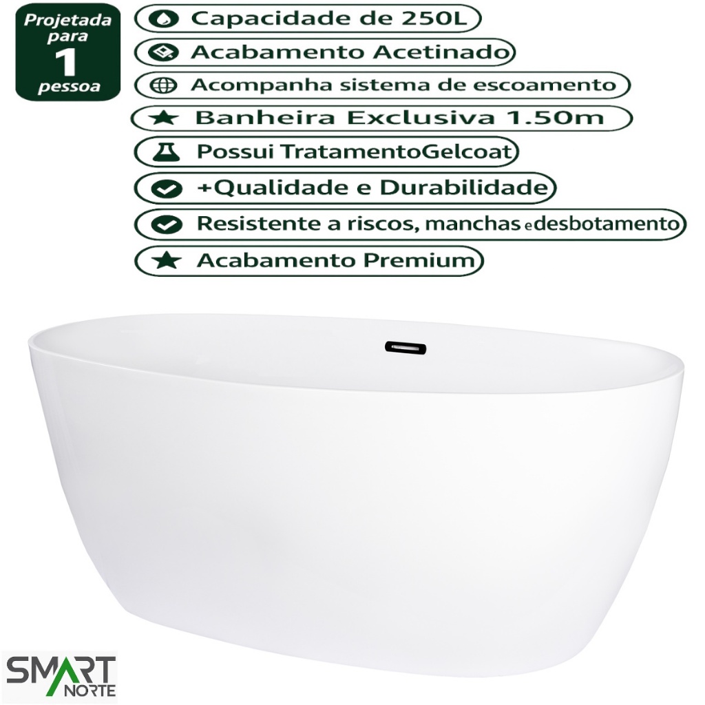 Banheira de Imersão Freestanding 1,50m em Acrílico Branco Premium