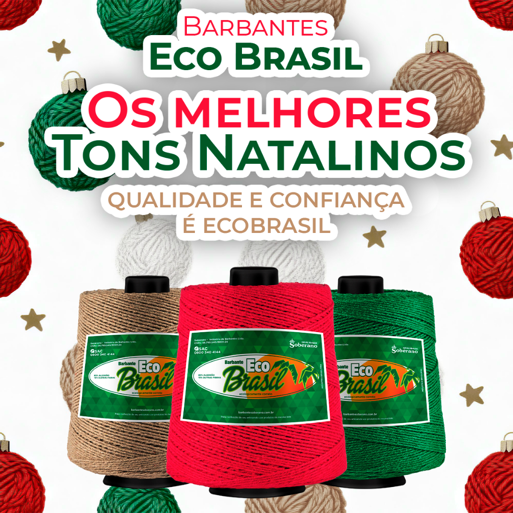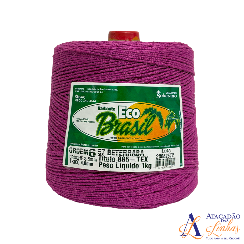 Barbante Eco Brasil 1Kg Fio 6 - Crochê Artesanato Tricô Macramê - Linha Completa de Cores